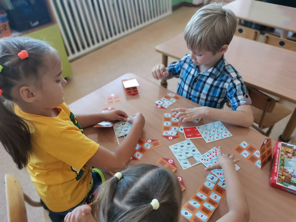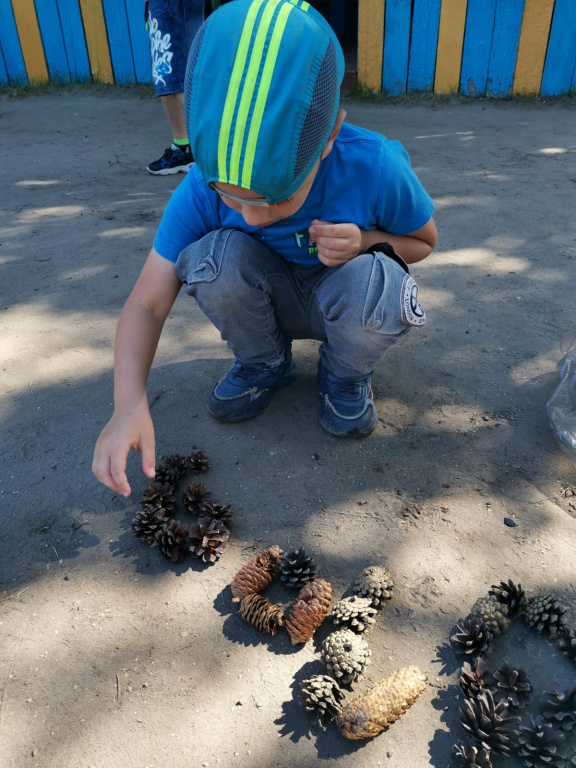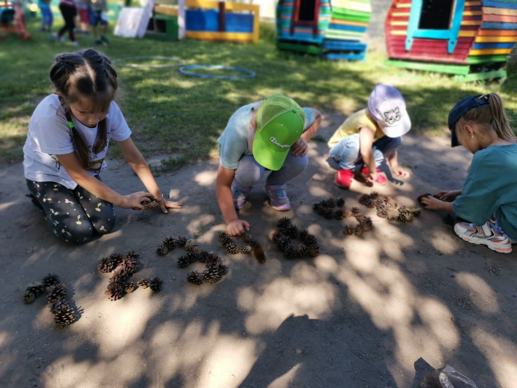 Ребята подготовительной группы «Светлячки» закрепили, последовательность дней недели, учились определять время на часах. Геометрические фигуры на столе превращались в увлекательные картинки, а настольные математические игры заставляли задуматься. На прогулке выкладывали цифры из природного материала. Шишки, которые собрали ребята, очень пригодились для выполнения этого задания.