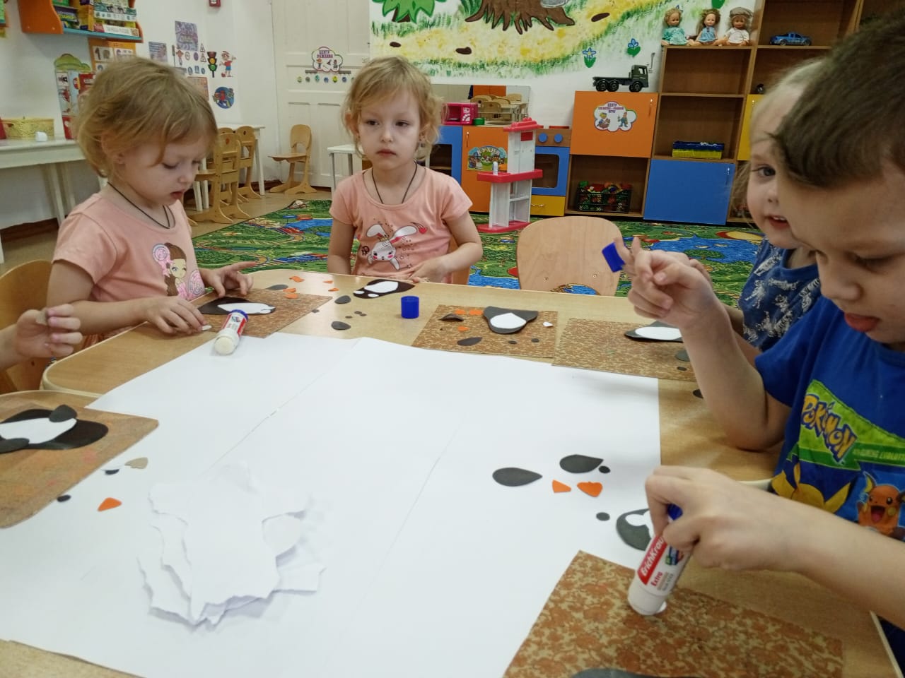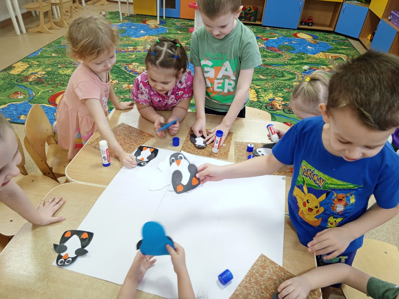 Ребята средней группы «Ягодка» тоже отметили этот праздник, сколько восторга и радости вызвала коллективная работа  у детей «Пингвины на льдине», каждый ребенок сделал своего пингвинчика.