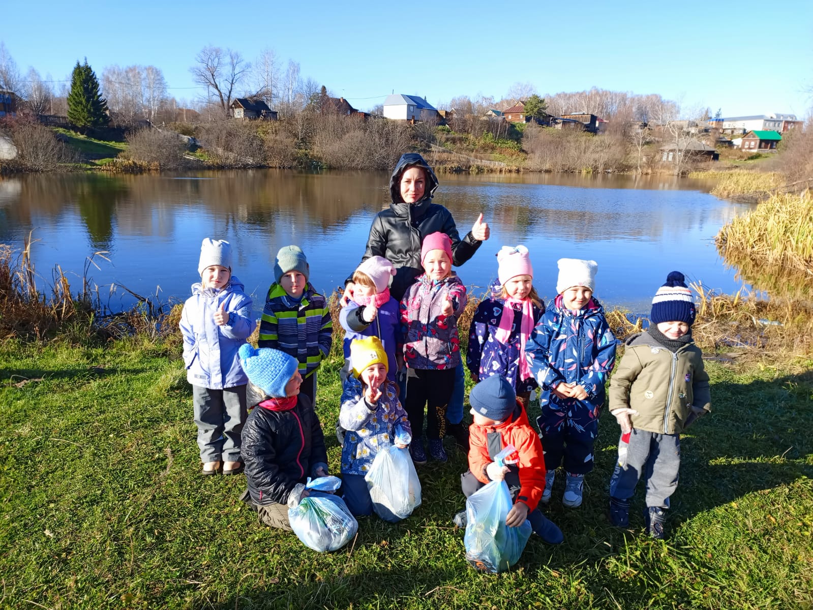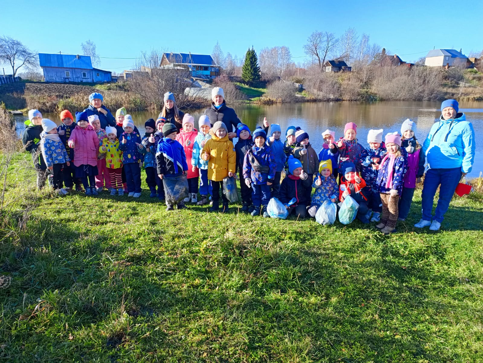 Сегодня мы хотим рассказать вам о замечательной акции, которая прошла в нашем детском саду «Ромашка» под названием «Чистое село». Воспитанники старшей группы «Ромашки», подготовительной к школе группы «Светлячки» и маленькие детки нашего детского сада — младшая группа «Пчёлки» — совершили поход к озеру Лобановское, чтобы убрать мусор.