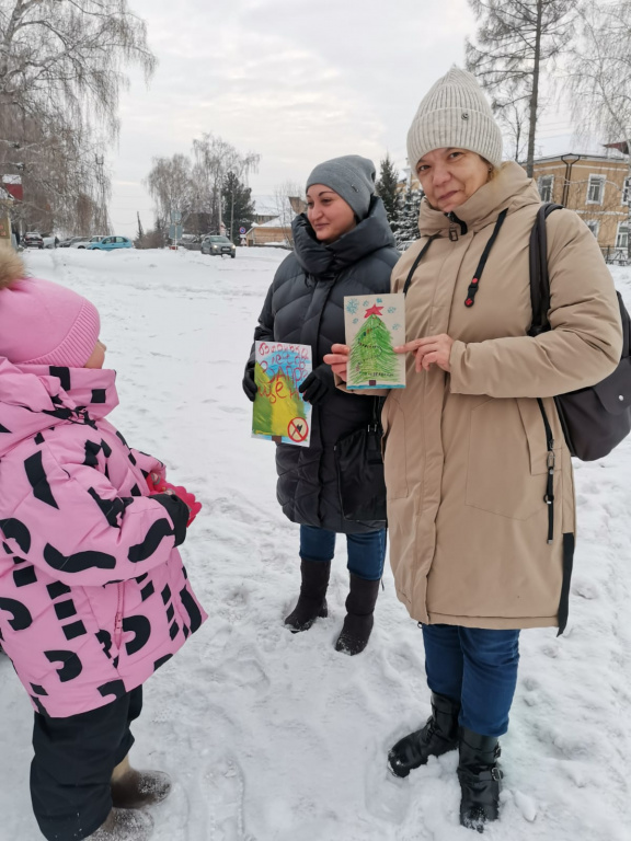 Спасибо родителям, которые откликнулись на нашу акцию и вместе с детьми нарисовали листовки. Мы их раздали прохожим на улице, призывая не губить елочки. Ну и заодно поздравили их с наступающим Новым годом!!!