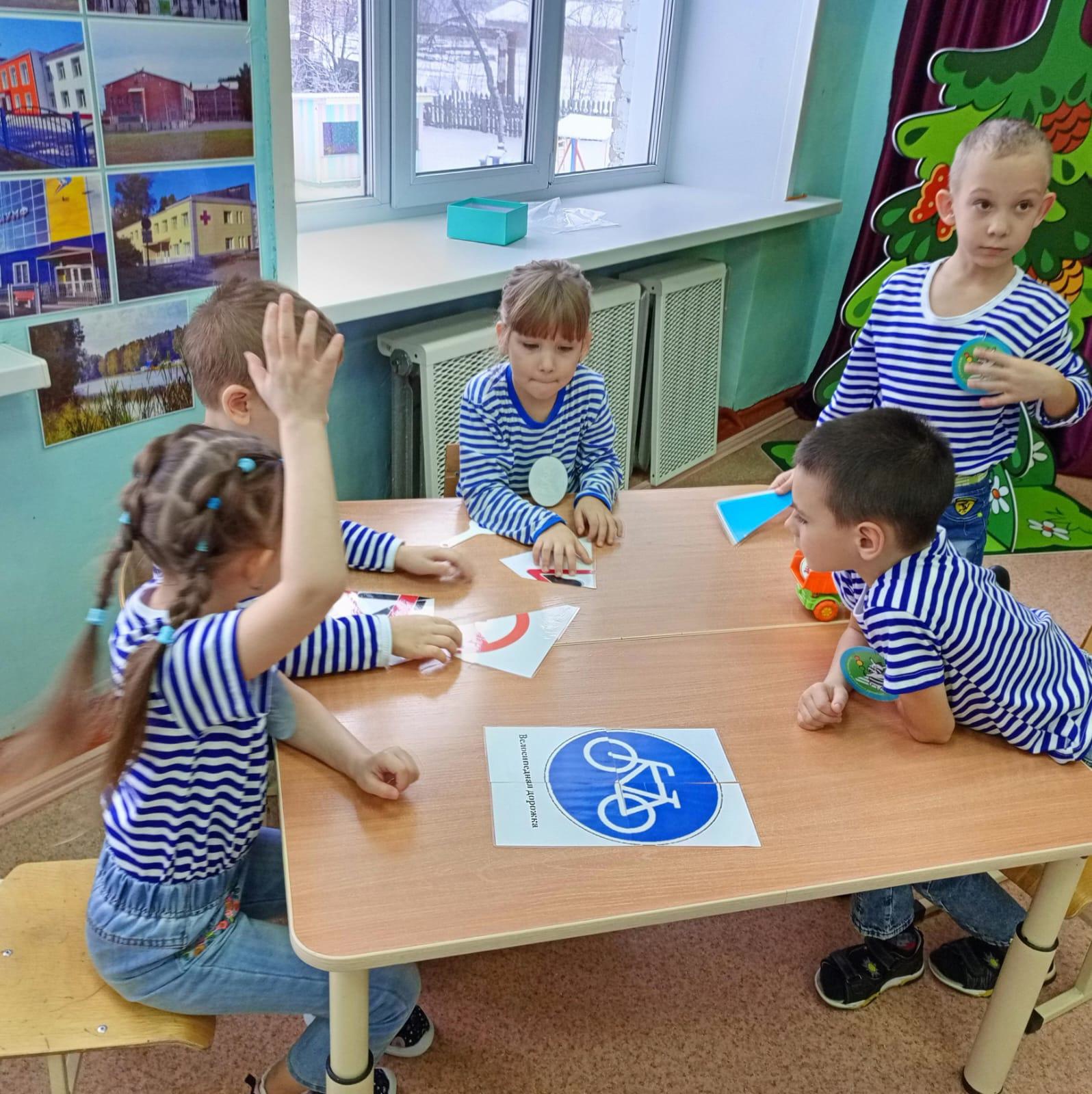Дети отгадывали загадки, собирали дорожные знаки из разрезанных деталей и объясняли значение каждого знака. Сложным было задание для капитанов команд, ребята по картинке должны были определить какие правила дорожного движения нарушили пешеходы.