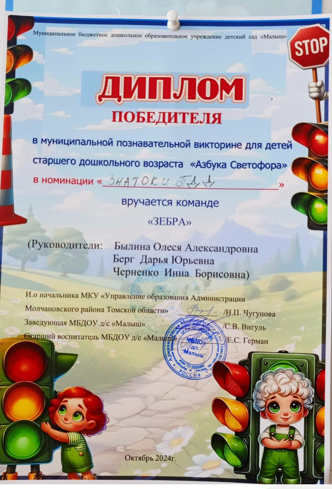 30 октября 2024 года на базе детского сада «Малыш», состоялась познавательная викторина для детей старшего дошкольного возраста на знания правил дорожного движения «Азбука светофора».