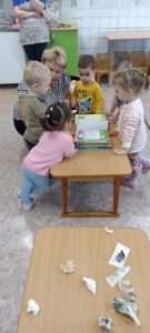 Во второй группе раннего возраста прошло открытое занятие по экспериментированию. К ребятам в гости приходила бумажная фея, она рассказала про свою страну, где всё сделано из бумаги. Затем дети  отправились в увлекательное путешествие, где на каждой станции знакомились со свойствами бумаги. Узнали о том, что бумага боится воды, она мнётся, рвётся, а ещё посмотрели, как бумага умеет танцевать с помощью пенопласта и шерсти. Узнали, что бумагу нужно экономить, поэтому в конце занятия дети вместе с воспитателем  превратили в цветы всю бумагу, которую помяли. Детям очень понравилось, они узнали много нового и интересного о свойствах бумаги. Попрощались с феей и получили на память от неё бумажные подарки: мальчики —  кораблики, девочки — тюльпанчики.