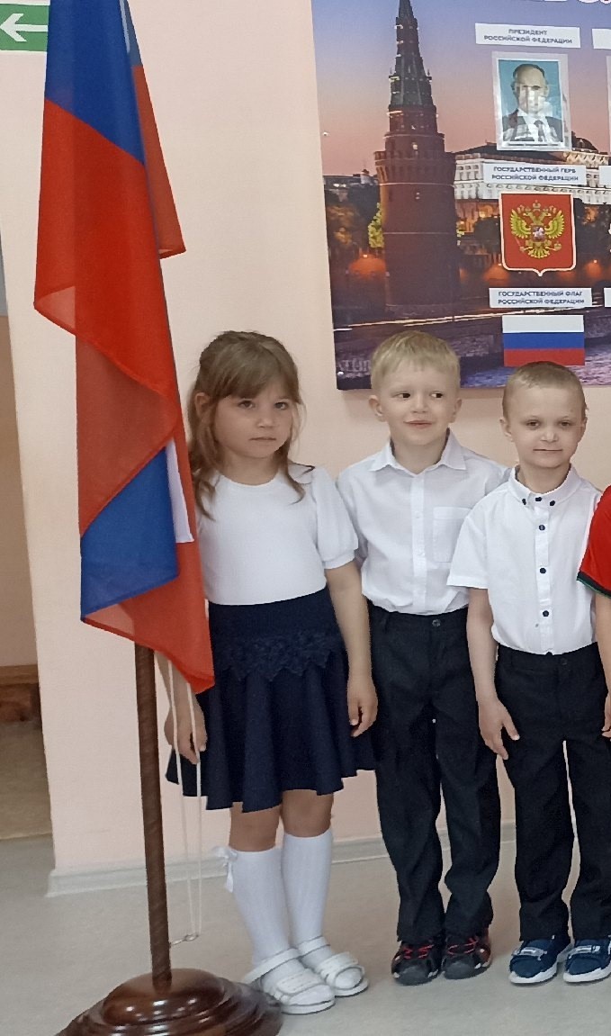 Почетное право поднять флаг РФ получили воспитанники подготовительной группы Фролова Полина, Поливахо Артур и Яковлев Максим, которые в составе творческого коллектива «Патриоты»