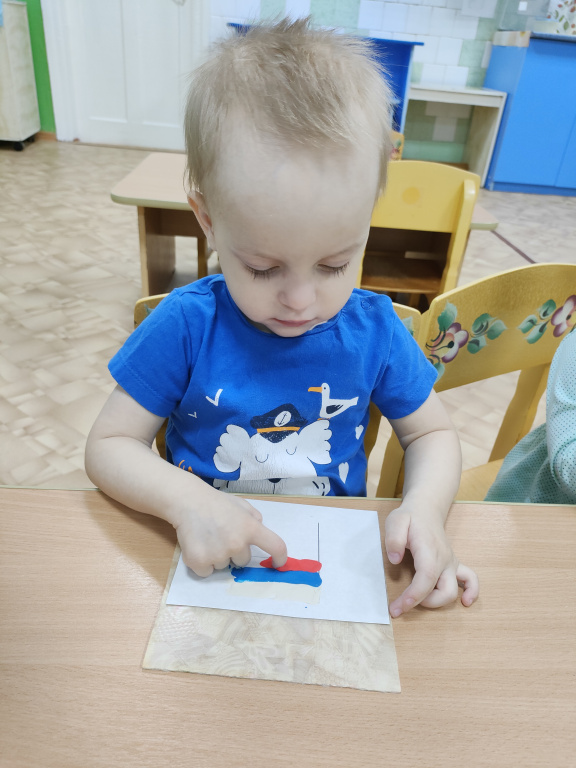 Основой формирования патриотизма являются глубинные чувства любви и привязанности к своей культуре и своему народу, к своей земле, к своей Родине. Воспитывать любовь к Родине- значит связывать воспитательную работу с окружающей социальной жизнью и теми ближайшими и доступными объектами, которые окружают ребенка. С самого раннего возраста в детском саду мы рассказываем детям о символах нашего государства и государственных праздниках. 12 декабря в России отмечается День Конституции. В этот день мы с малышами поговорили о России, рассмотрели герб, флаг, послушали гимн нашего государства и с помощью техники «Пластилинография» слепили флаг России. Детям всегда интересно все новое, занятия с пластилином особенно их завлекают. С помощью различных техник и методик мы прививаем детям чувство любви и патриотизма к своей стране.