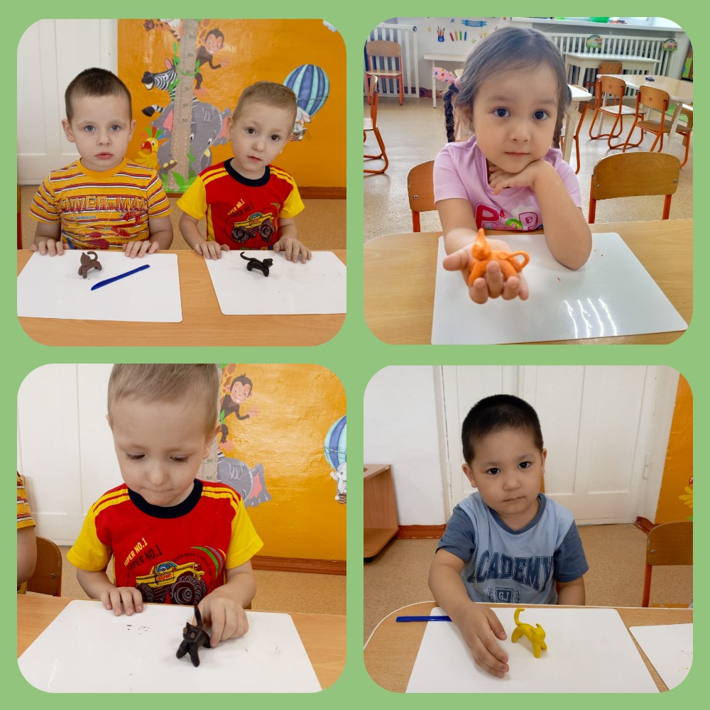 Воспитанники младшей группы «Пчёлки» побеседовали о домашних животных — кошках. А ещё ребята с большим удовольствием слепили кошек из пластилина.