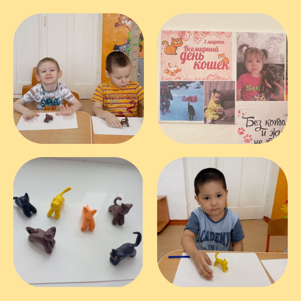 Мало найдётся в мире людей, кто останется равнодушным к этим пушистым, подвижным, и очень ласковым, самым нежным и грациозным домашним питомцам, Любовь к ним оказалась в мире настолько большой, что для всех этих любимцев был учреждён специальный праздник. В подготовительной группе в этот день ребята познакомились с историей его возникновения, узнали о том, что помимо «эстетического удовольствия» кошки выполняют ряд полезных для человека функций: они отлично ловят грызунов, лечат некоторые заболевания, дарят много позитивных эмоций. А люди должны заботиться о них, кормит, ухаживать. Психологи отмечают, что общение с животными оказывает положительное влияние на развитие личности ребёнка.