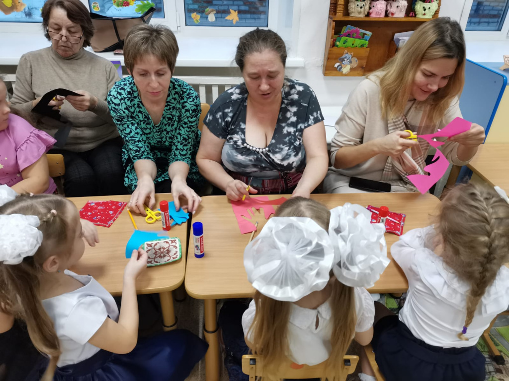 3 ноября прошел родительский клуб «Мы вместе», который был также посвящён Дню народного единства. Дети читали стихи о Родине, о родном крае. Затем взрослым и детям было предложено выполнить совместную аппликацию «Когда мы едины — мы непобедимы!»