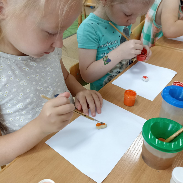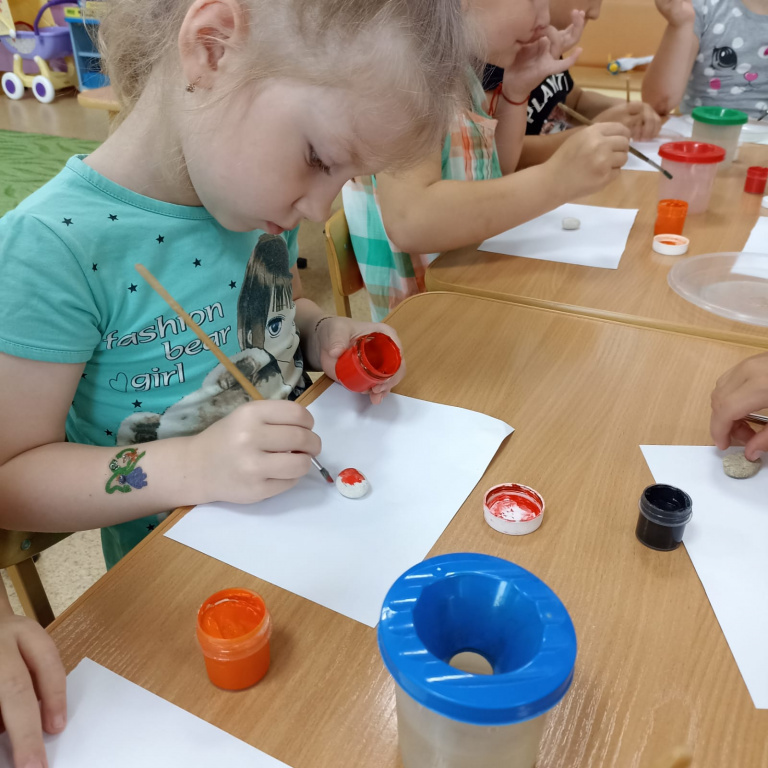 «День творчества», 14 июля. Природа — замечательная мастерская. Ребята старшей группы освоили новое увлечение, которое подарило им уникальные ощущения — это роспись камней!