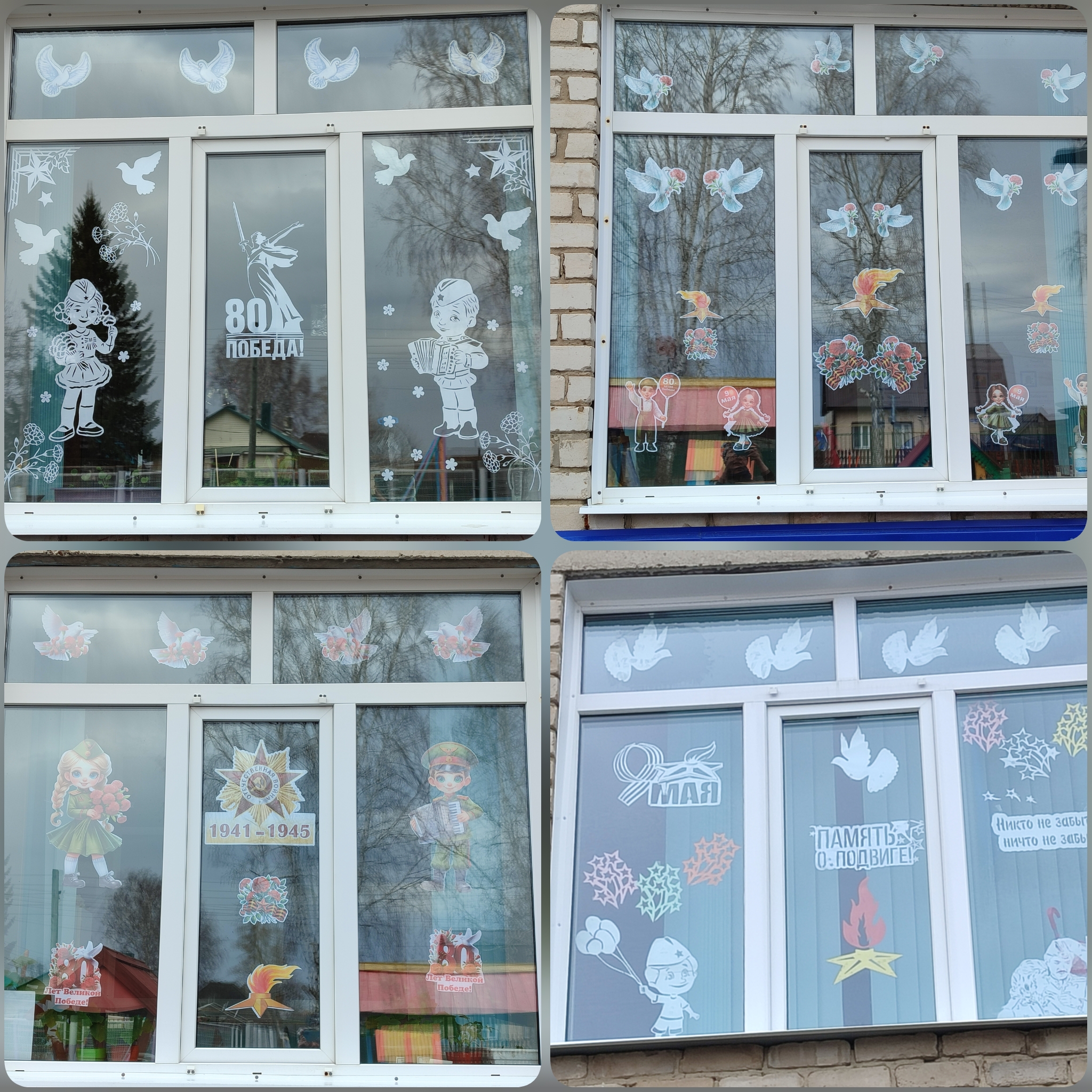 Окна Победы» — традиционная акция, которая проводится накануне Дня Победы. Детский сад «Ромашка» присоединился к патриотической всероссийской акции. По всей стране люди украшают окна к 9 Мая. На окнах групп нашего детского сада тоже появились изображения георгиевских лент, журавлей, вечного огня, голубей мира и других символов Победы. Каждый элемент имеет глубокий смысл и является данью уважения тем, кто сражался за нашу свободу и мир.