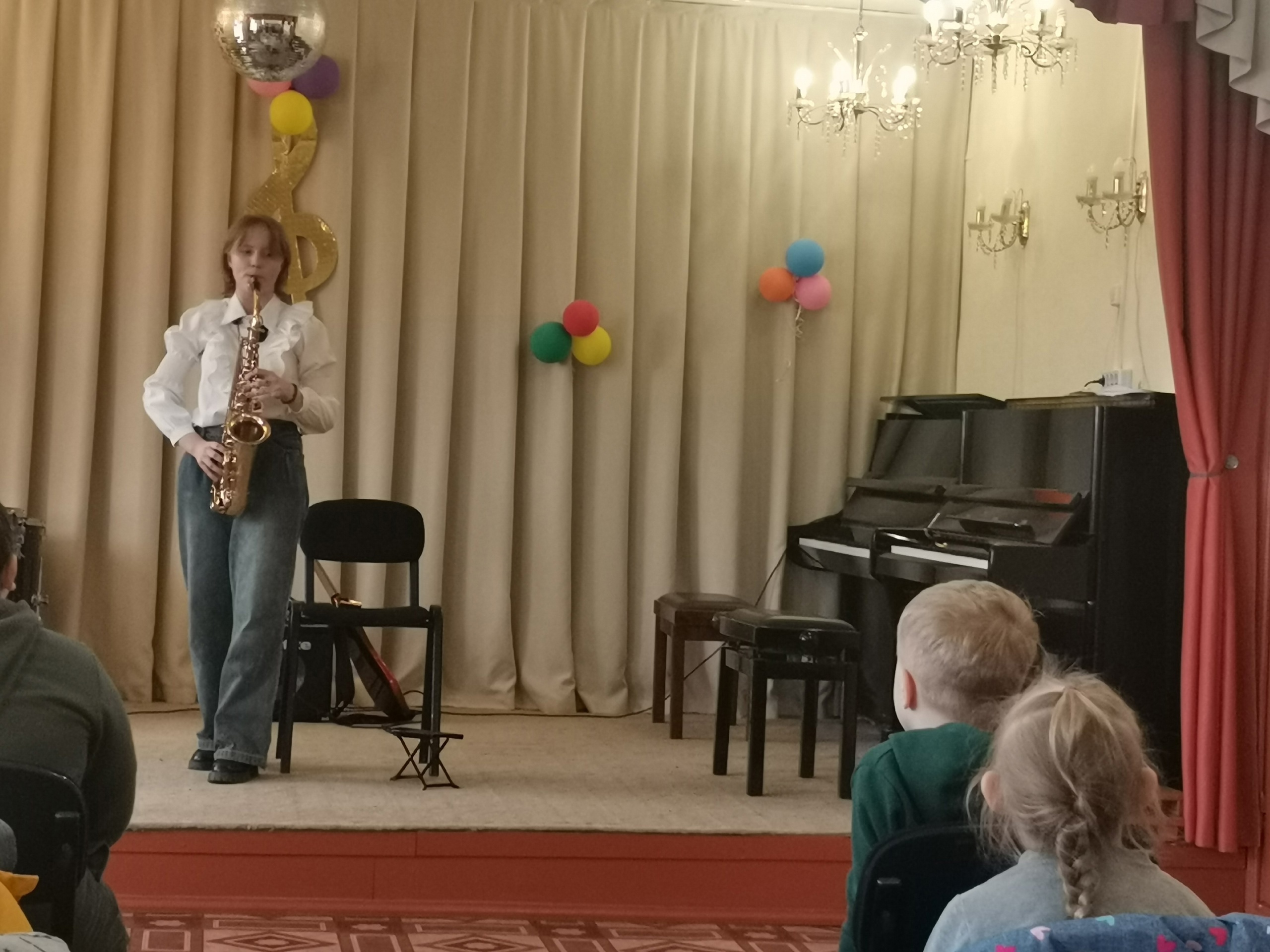 Ребята из старшей и подготовительной групп посетили музыкальную школу. Для них организовали концерт, где юные музыканты разных возрастов продемонстрировали свои навыки. Ребята послушали короткие пьесы, которые отличались по настроению и стилю. Некоторые дошкольники впервые познакомились с такими инструментами, как труба, саксофон, флейта и ксилофон.