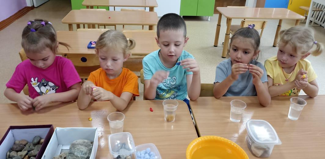 После каждого опыта дети делали выводы. Они узнали, что камни могут быть разными по цвету, форме и размеру. Некоторые из них гладкие, другие — шероховатые. Все камни тяжёлые и очень плотные.