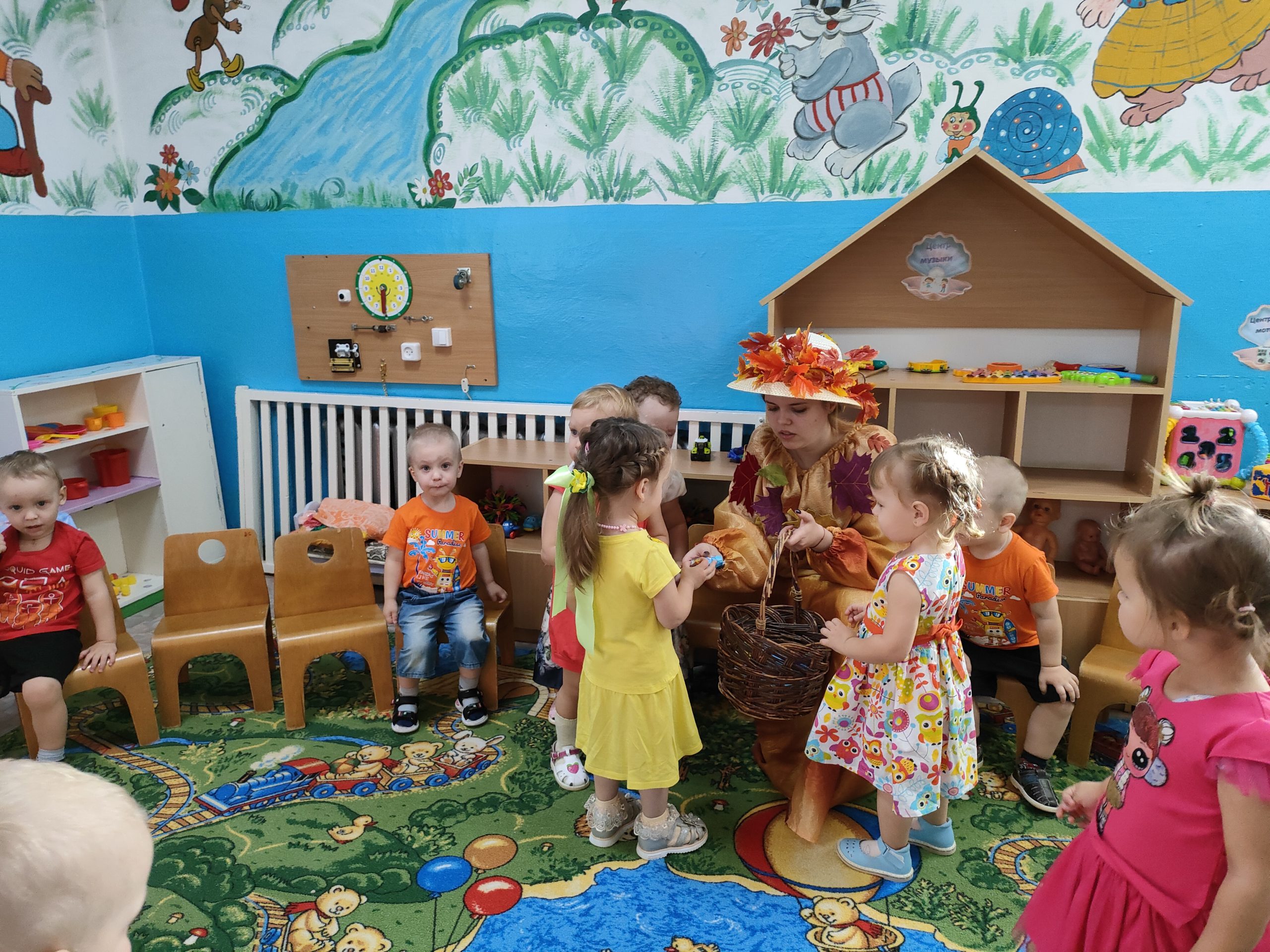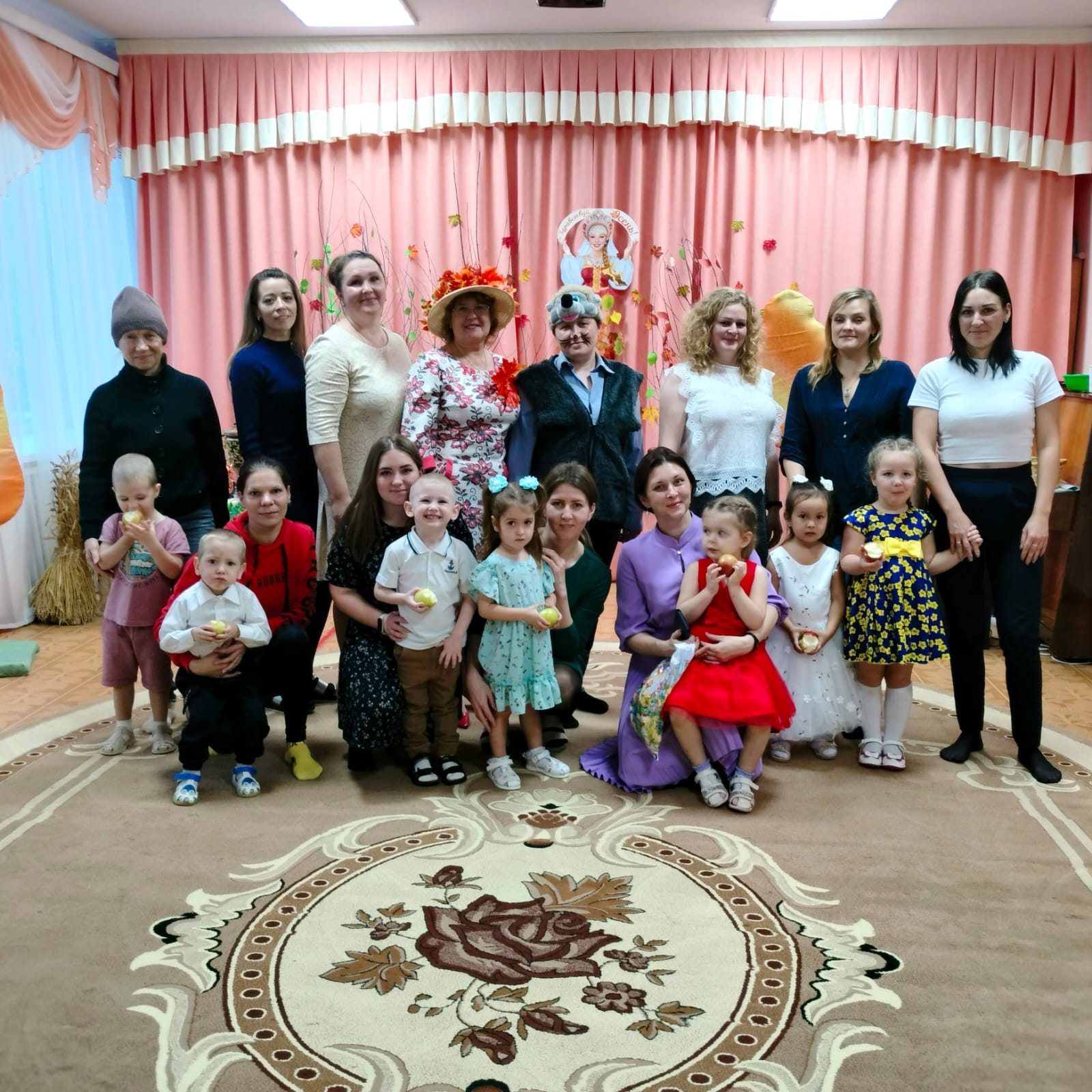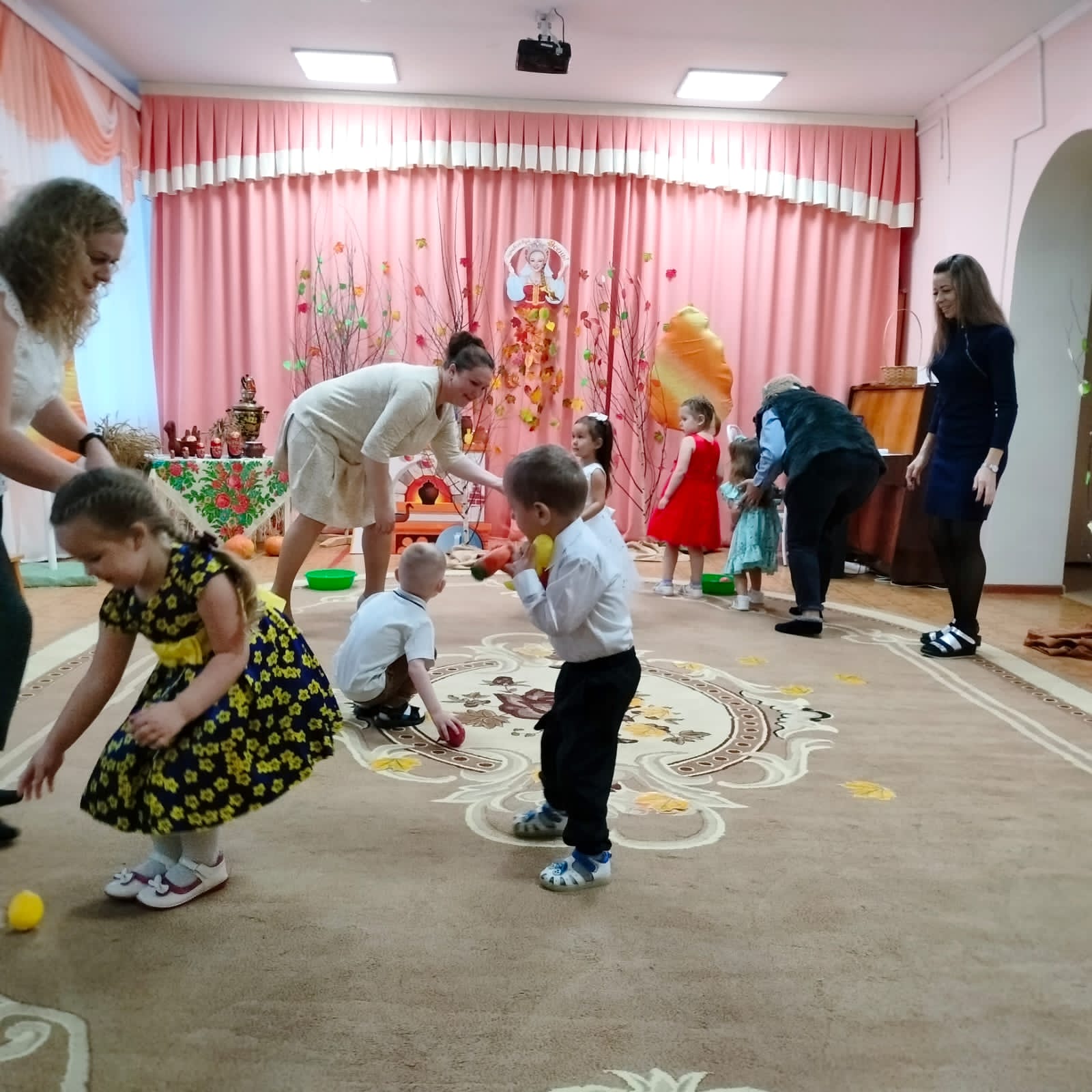На этом празднике в группе «Жемчужинки» ребята радостно танцевали и играли вместе, собирали осенние дары для мишки и веселились вместе с осенью.