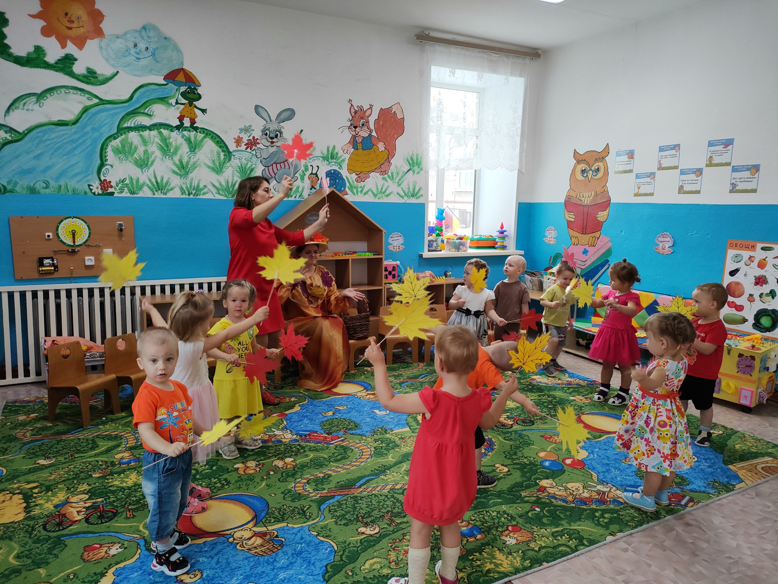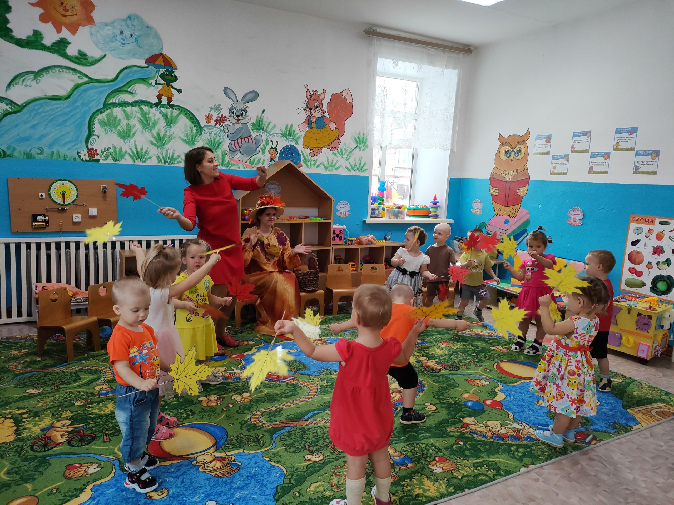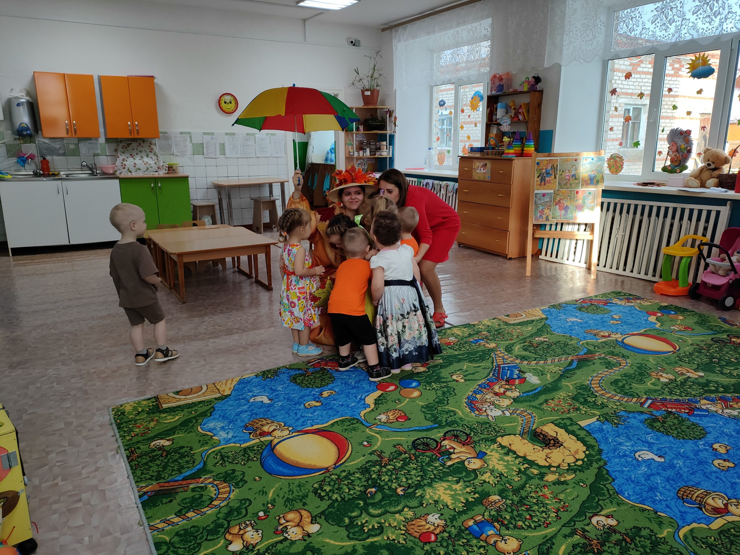 На этом празднике в группе «Жемчужинки» ребята радостно танцевали и играли вместе, собирали осенние дары для мишки и веселились вместе с осенью.