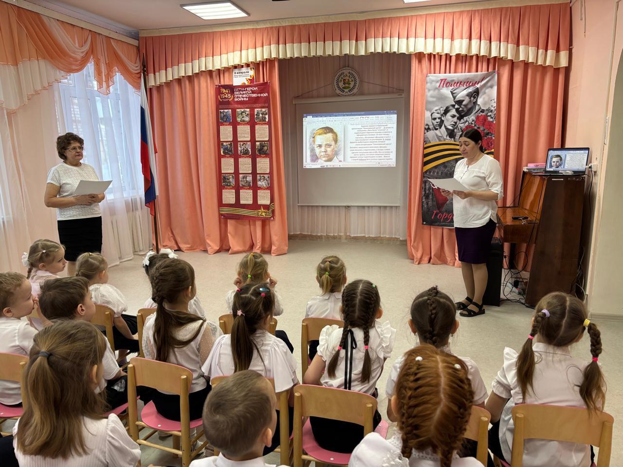 Ребята старшей и подготовительной групп с большим вниманием и интересом послушали рассказы своих воспитателей, посмотрели фильм о пионерах-героях, которые наряду со взрослыми боролись с фашистами во время Великой Отечественной войны, поговорили о том, кто такой Герой войны.