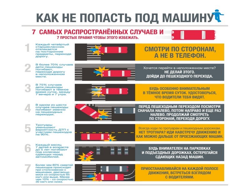 - Не выходите с ребенком из-за машин, кустарников, киосков, не осмотрев предварительно дороги! Это типичная ошибка, и нельзя допускать, чтобы дети ее повторяли.