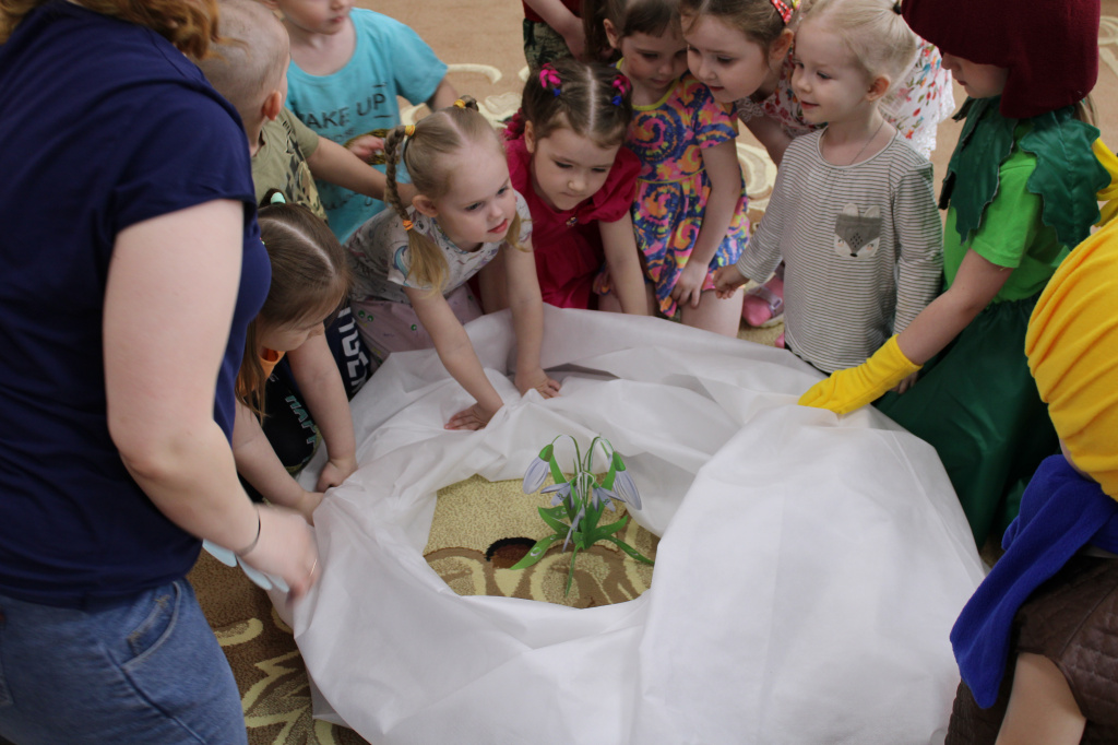 25 апреля – Земля наш дом. Весенняя неделя добра совпала с Днём Эколят. В этот день провели «Праздник Эколят»:развлечение «Эколята-Дошколята – друзья природы. Первоцветы» с участием лесных человечков: Умницы, Шалуна, Тихони и Ёлочки. В празднике приняли участие ребята всех возрастных групп. Воспитанники младшей группы отправились в лес на полянку, на которой распустились первые цветы подснежники. Ребята из средней группы показали сценку о том, как на окраине леса жили брат и сестра. Леший похитил Машеньку, а она не растерялась и рассыпала по лесу свои бусы, которые превратились в подснежники, как только пригрело солнышко. Так по весенним цветам брат нашёл свою сестру. Ребята старшей группы превратились в ранние весенние цветочки и поведали о том, как на лесной полянке «спорили» первоцветы о том, кто из них важнее. А ребята из подготовительной группы рассказали стихи о весеннем преображении природы. В завершении праздника дружно спели гимн «Эколят» и каждая группа получила задание: по карте нужно было пройти по экологической тропе, выполнить задания, ориентируясь по карте и найти приз. Ребята с интересом наблюдали за цветами на клумбе, за почками на деревьях, говорили о первоцветах и о том, как нужно защитить эти нежные цветочки.