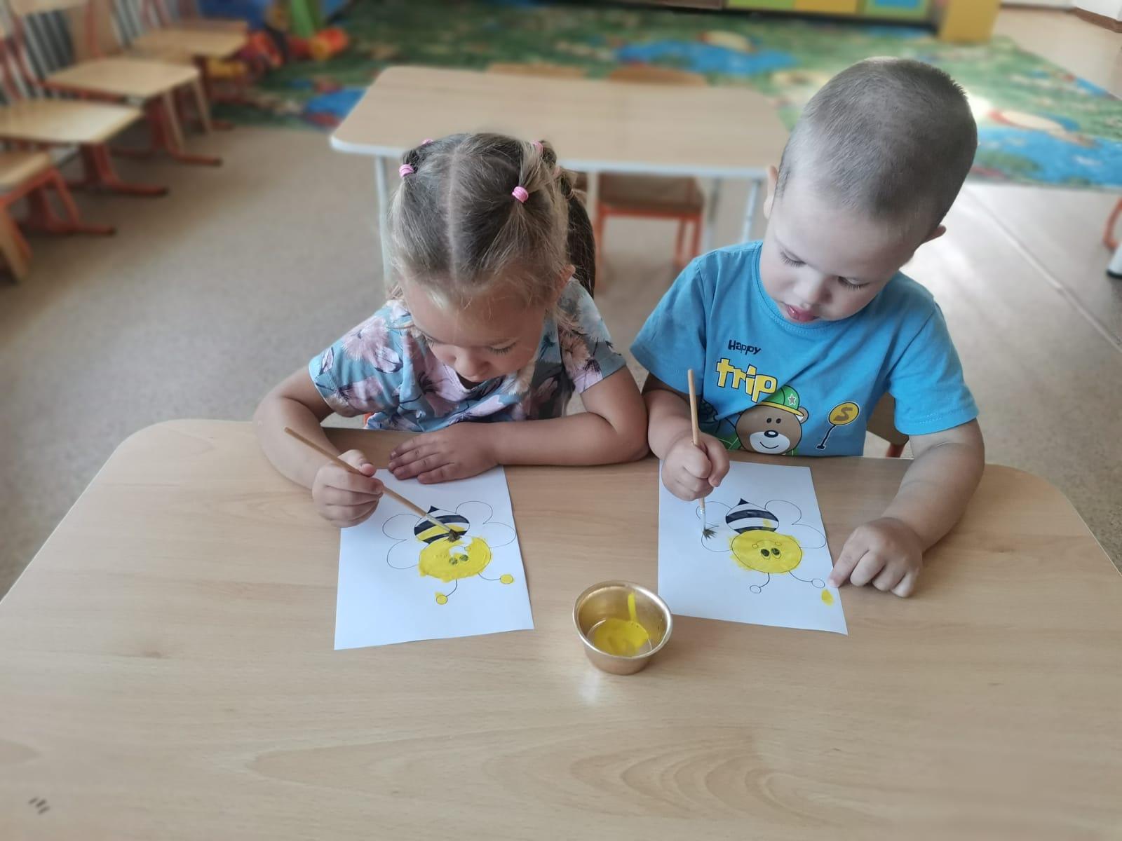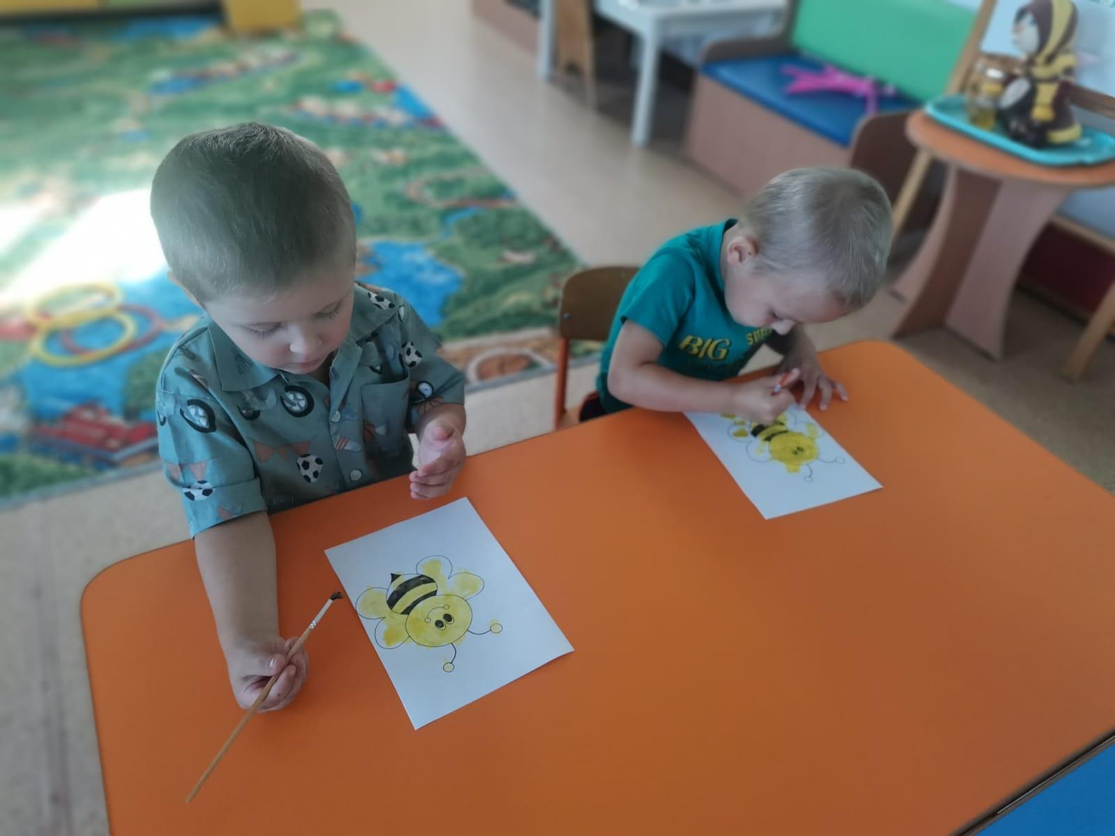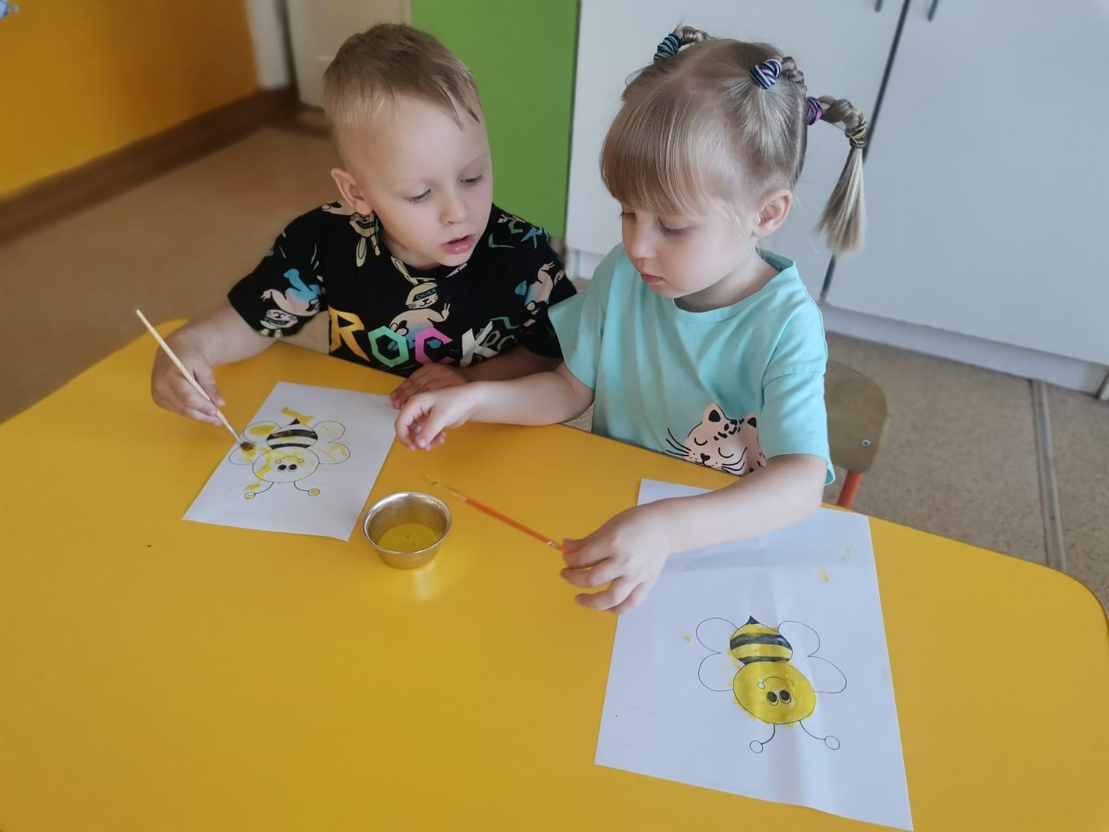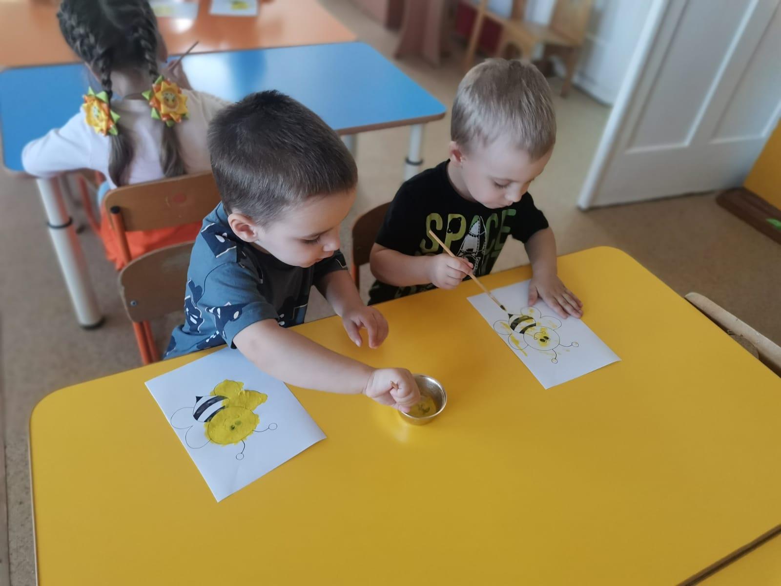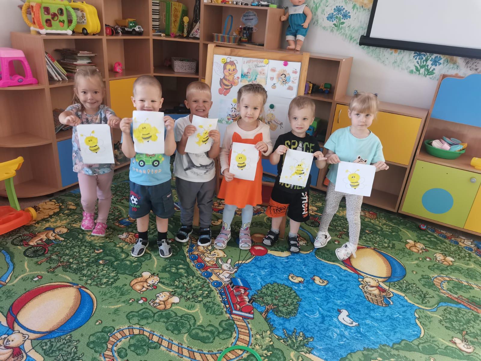 Этот день стал поводом для наших маленьких воспитанников окунуться в увлекательный мир пчел и меда. С утра в детском саду царила атмосфера творческого вдохновения! Наши юные художники с задором взялись за кисти и краски, чтобы воплотить свои представления о пчелах на бумаге. Каждый ребенок создал свою собственную, неповторимую пчелу — яркую, игривую, с пушистыми крылышками и полосками.