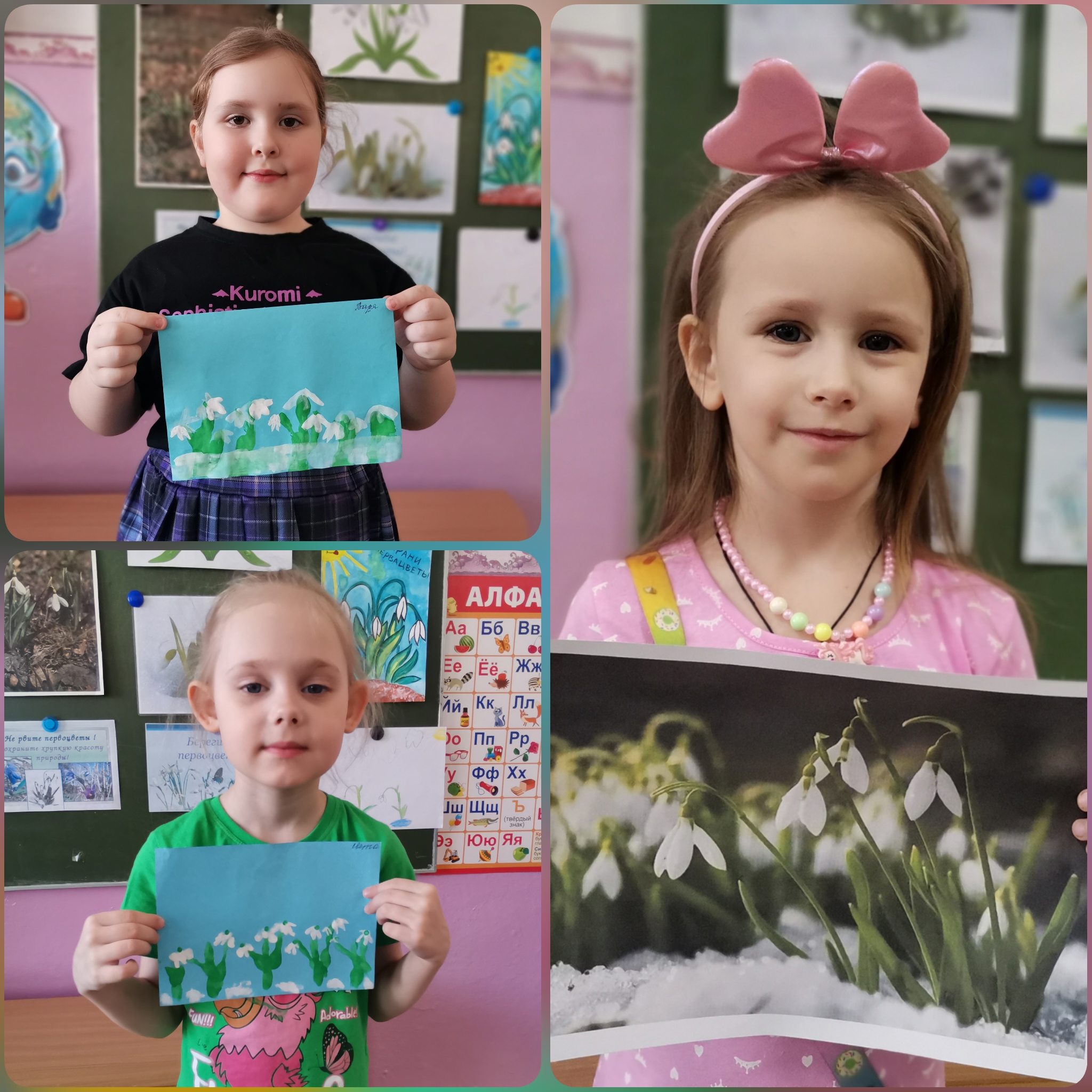 Дети старшей группы ближе познакомились с этим красивым, нежным и удивительно стойким цветком. Рассматривали иллюстрации первоцветов, отгадывали загадки, слушали стихи о подснежниках. Ребята узнали, что подснежники бывают разных форм и цветов. В настоящее время большинство видов подснежников занесены в Красную книгу как исчезающие виды растений. А чтобы создать весеннее настроение, ребята нарисовали эти цветы необычным способом: ребром ладони и пальчиком. День подснежника — это хороший повод поговорить с детьми об экологии и защите природы!!!