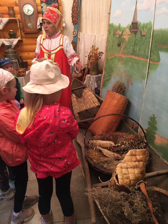 Ребята старшей группы «Ромашки» совершили путешествие в музей истории Молчановского района. Работник музея в русском национальном костюме радушно встретила  ребят и провела  очень интересную экскурсию по залу музея с разными экспозициями, которые помогли понять и увидеть  быт  наших предков.