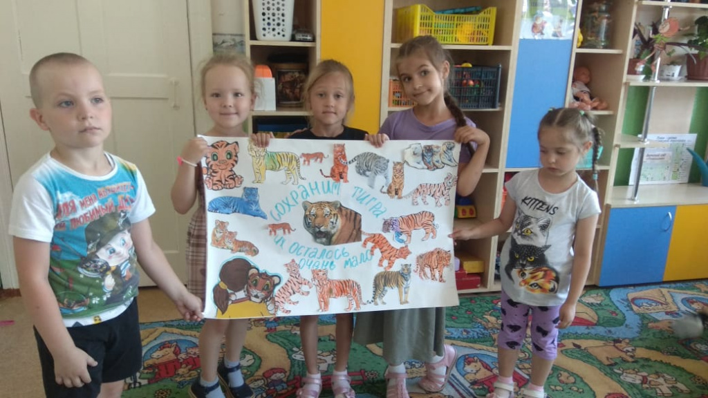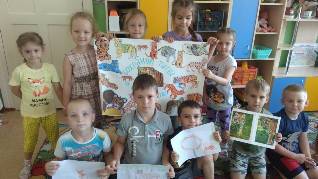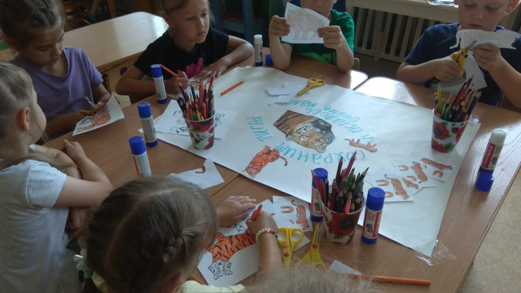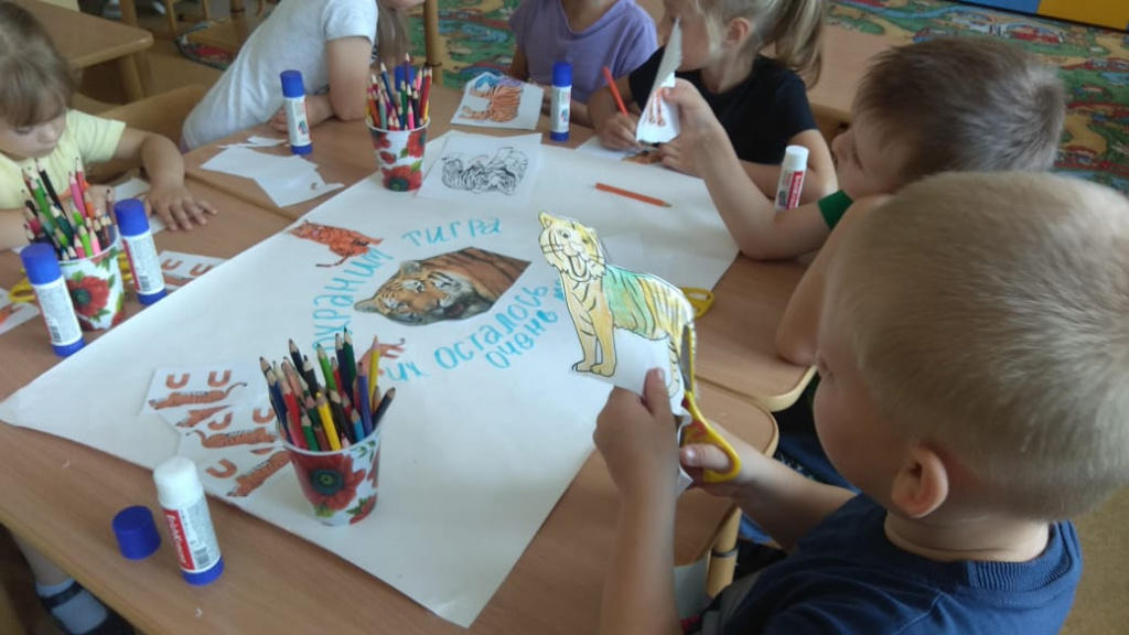 В подготовительной к школе группе «Светлячки» выполнили коллективную работу «Сохраним тигра».