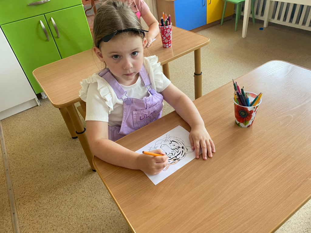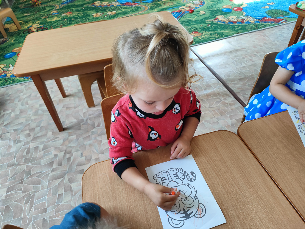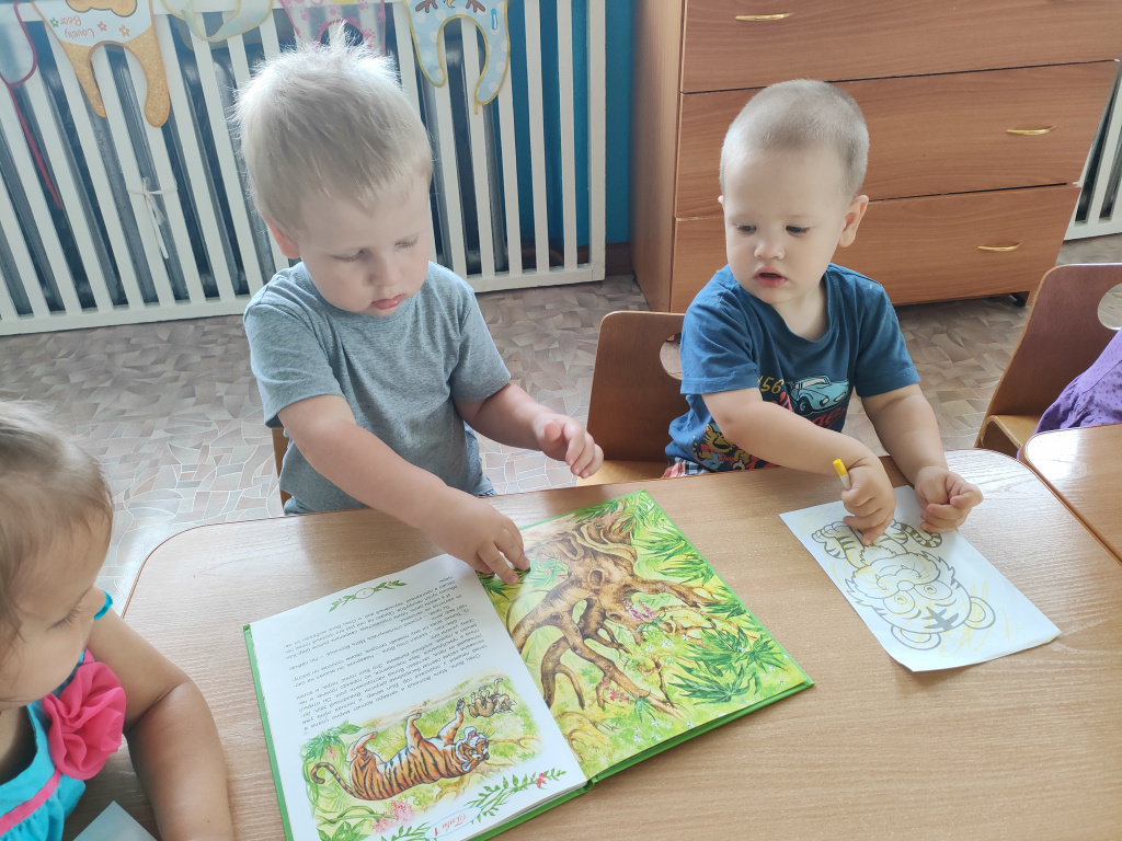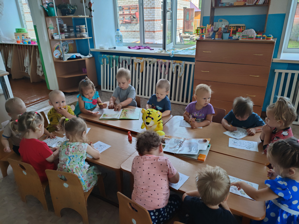В группе «Жемчужинки» мы с ребятами поговорили о жизни тигров, о том, где они могут жить, чем питаются, какая связь между тиграми и нашими милыми домашними кошечками. Рассмотрели картинки с изображением тигров и тигрят, почитали энциклопедию для детей, послушали рычание тигра, поиграли в подвижную игру на прогулке «Быстрый тигр» и постарались раскрасить тигров с помощью восковых карандашей.