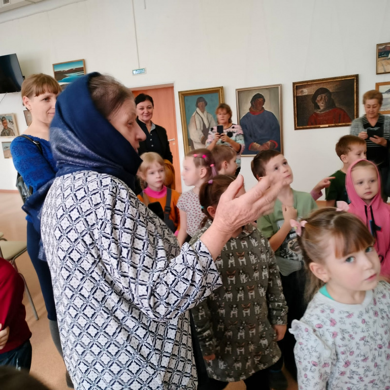 26 октября воспитанники подготовительной группы вместе с воспитателями и родителями посетили выставку картин Народного художника России Александра Андреевича Шумилкина.