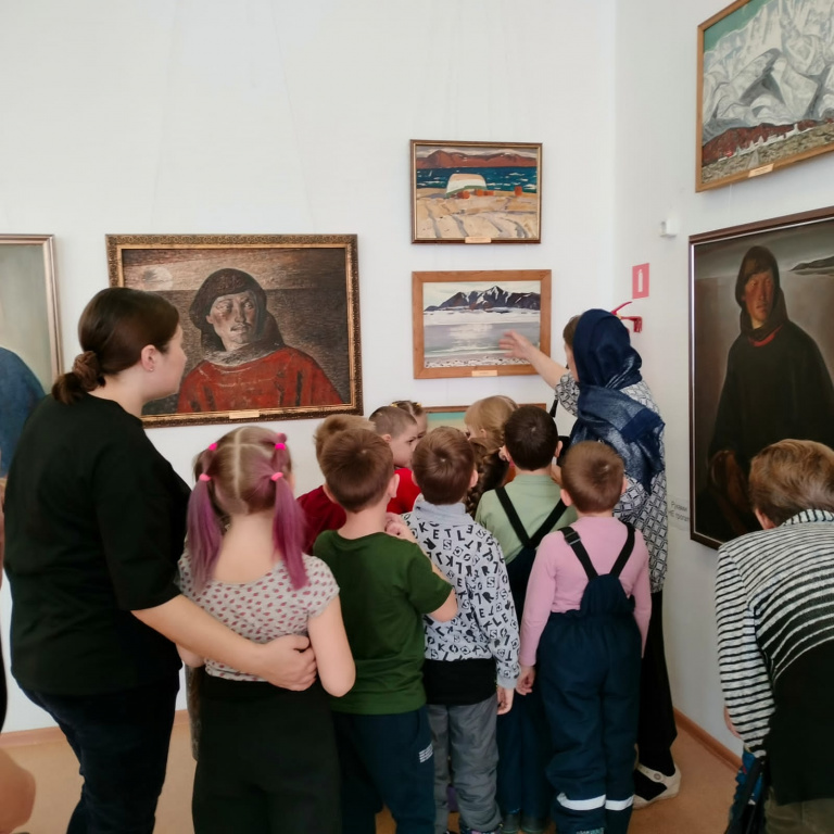 Ребята с интересом разглядывали картины художника, делились впечатлениями, узнали, что Александр Андреевич — автор многочисленных живописных полотен, посвященных сибирской земле, томскому Северу и Томску. Его произведения хранятся во многих музеях России, в том числе в Томском областном художественном музее, Государственном Русском музее, Государственной Третьяковской галерее.