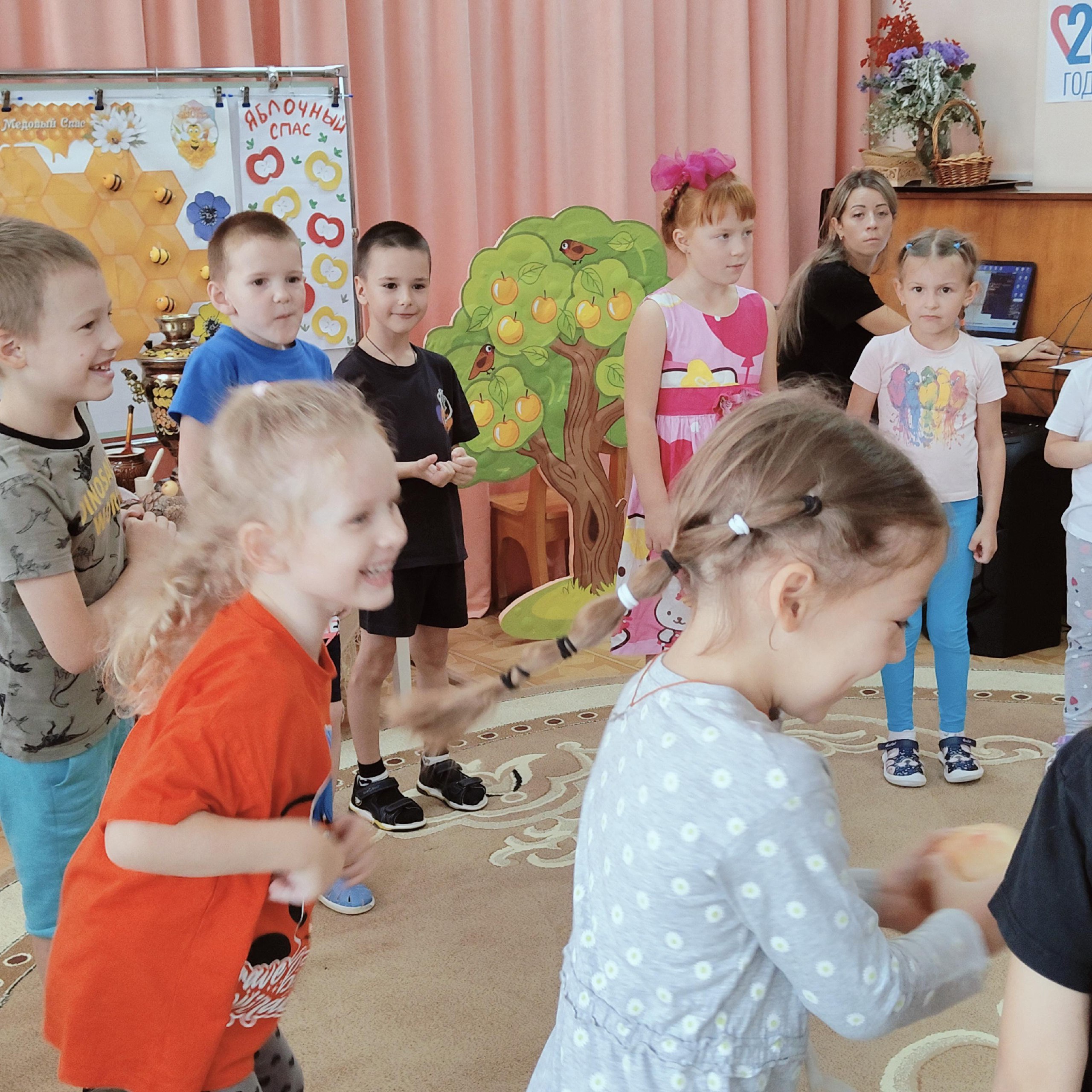 Ведущие праздника рассказали детям о трёх Спасах – Медовом, Яблочном и Ореховом, о том, какие традиции связаны с каждым из них. Дети с радостью водили хороводы и читали стихи про яблоки, мед и орехи. Каждый ребёнок с гордостью демонстрировал свои знания о символах праздника.