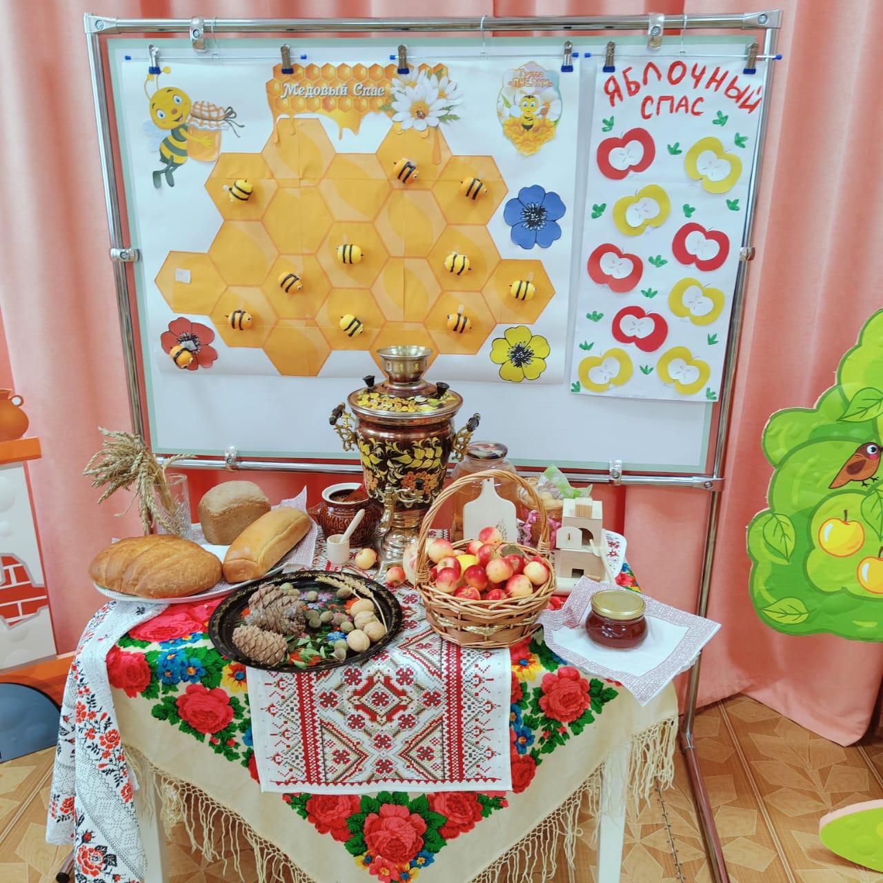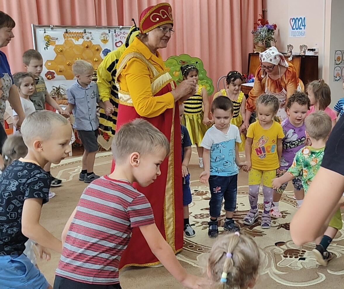 В детском саду «Ромашка» 29 августа прошёл тематический день «Три Спаса, три благости август нам дарит»! Все группы детского сада, от самых маленьких до старших дошкольников, с нетерпением ждали этого дня, ведь он был полон интересных игр, творческих занятий и веселья. Праздник начался с красочного и яркого оформления зала, где красовались яблоки, мёд и корзина с орехами – символы щедрого августа.