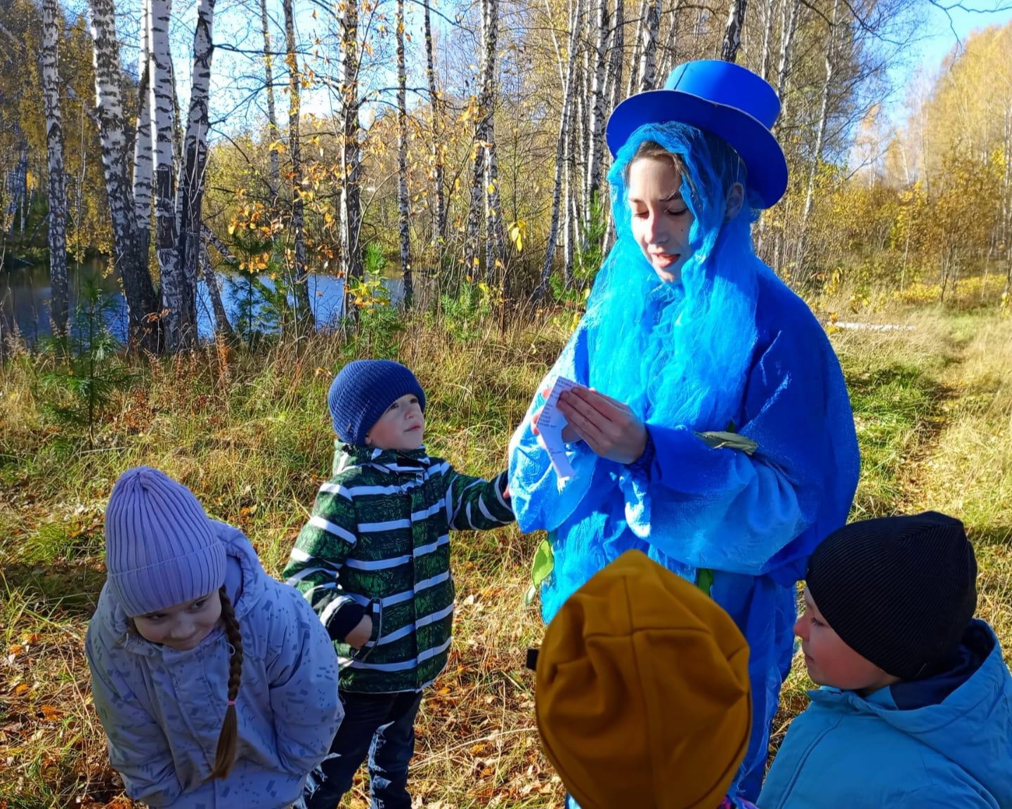 Как и в любом походе, перед выходом было необходимо подготовиться. Вместе с родителями воспитанники собрали рюкзачки с едой, а также повторили с воспитателем правила дорожного движения и правила поведения на природе. Путь лежал по улицам с. Молчаново, через осенний лес и к берегу лесного озера. Наконец, они оказались на поляне, усыпанной разноцветными листьями. Внезапно из-за дерева появился Лесовичок, который спросил, зачем они пришли в его лес. Ребята рассказали сказочному герою, что они пришли отдыхать, играть, любоваться красотой природы и искать клад. Лесовичок поделился своей историей о кладе и о том, как его найти. Оказалось, что у него есть часть карты, которая поможет им в поисках заветного сундучка. Но чтобы её получить, нужно было выполнить все задания хозяина леса.