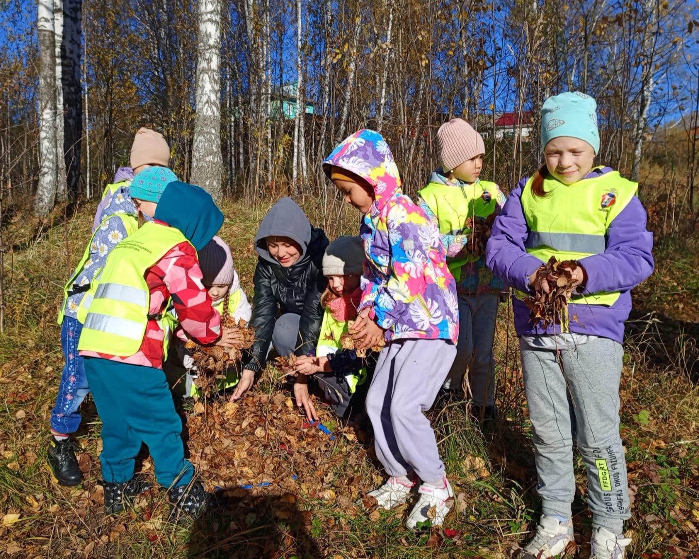 Ребята с удовольствием отвечали на вопросы Лесовичка, собирали листья и даже устроили настоящий листопад. Герой поблагодарил детей за помощь и вручил им часть карты.