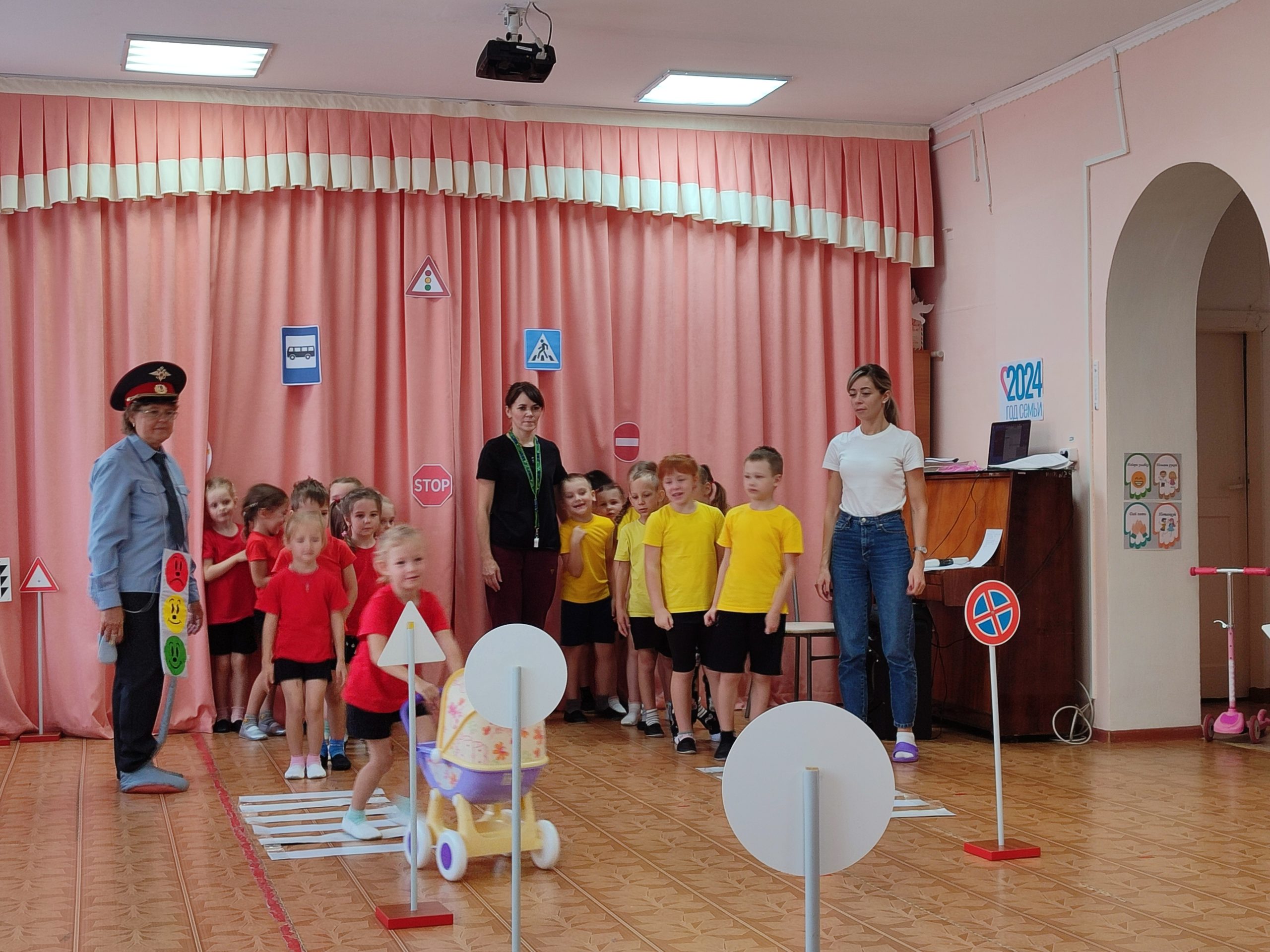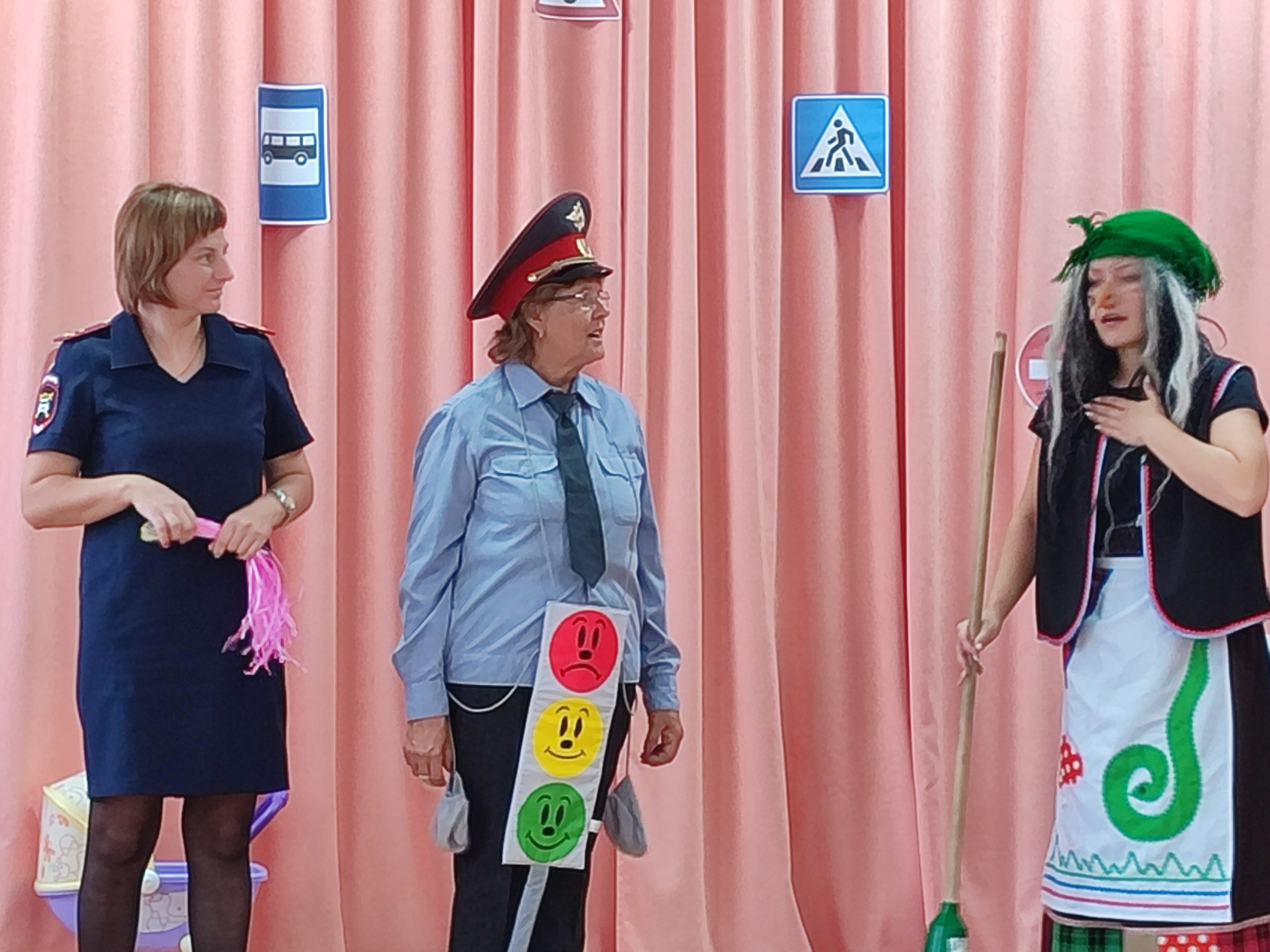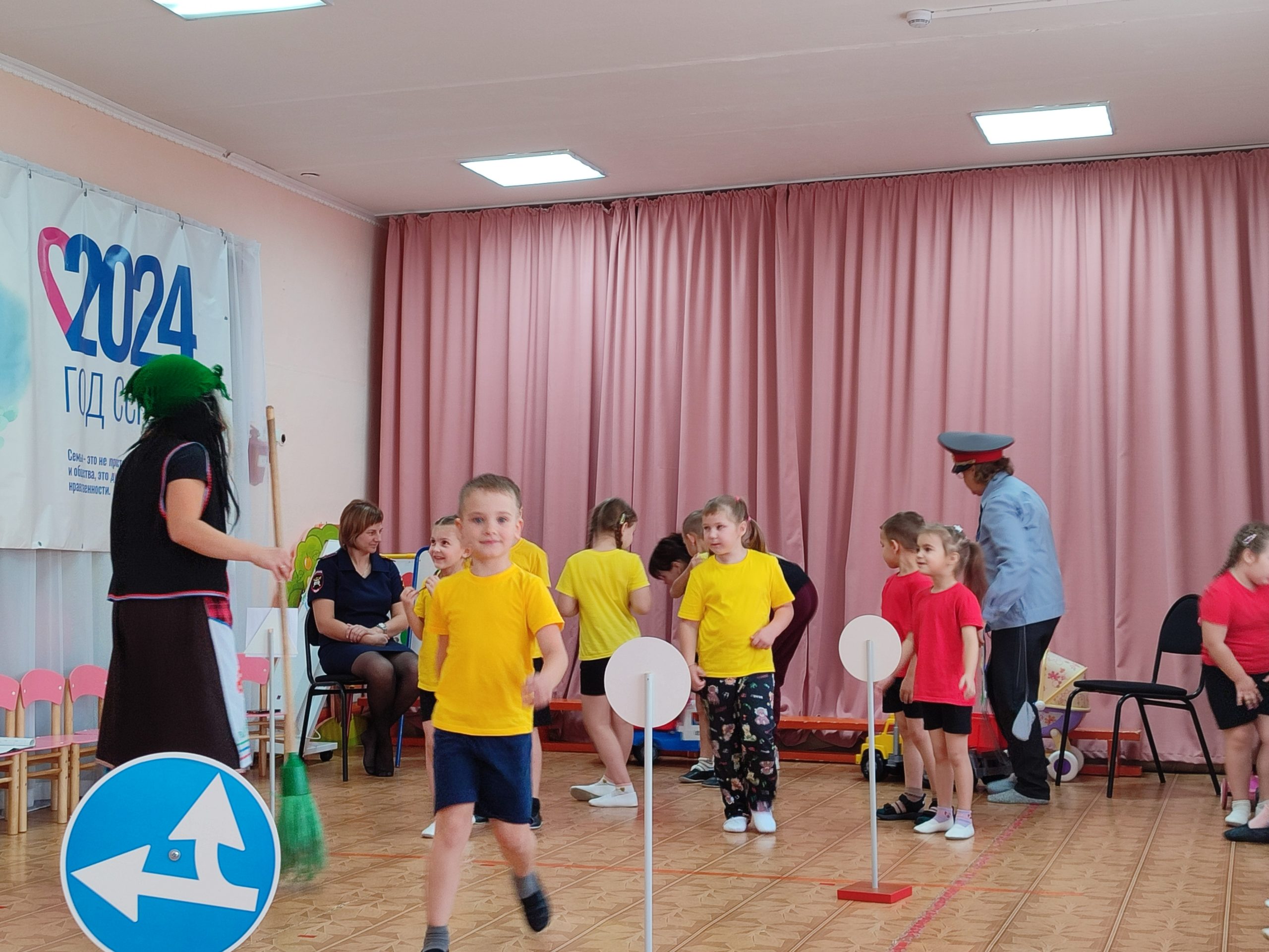 На протяжении всего мероприятия ребята вместе со Светофором учили её правилам. С большим удовольствием дети продемонстрировали свои знания в спортивных эстафетах и игровых упражнениях, таких как «Почини светофор» и «Внимательный водитель». Первоначально Баба-Яга испытывала трудности, вызывая смех у детей, но вскоре, благодаря их помощи, начала быстро осваивать новое. В конце мероприятия инспектор наградила медалями ребят и Бабу-Ягу.