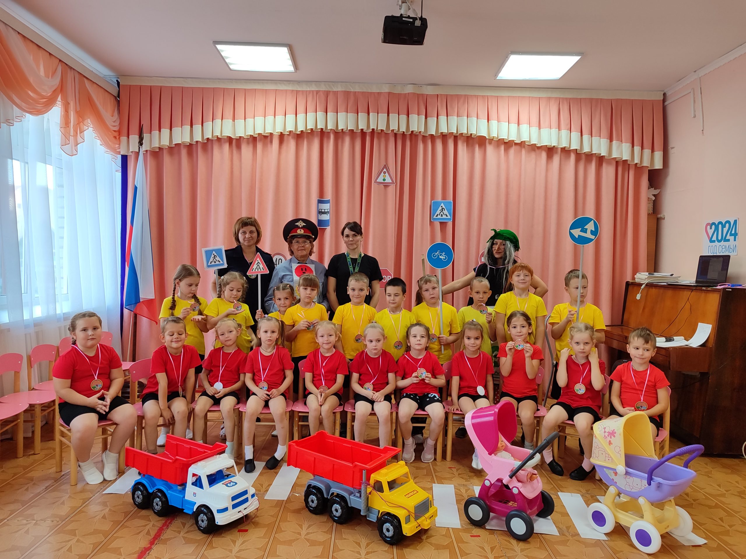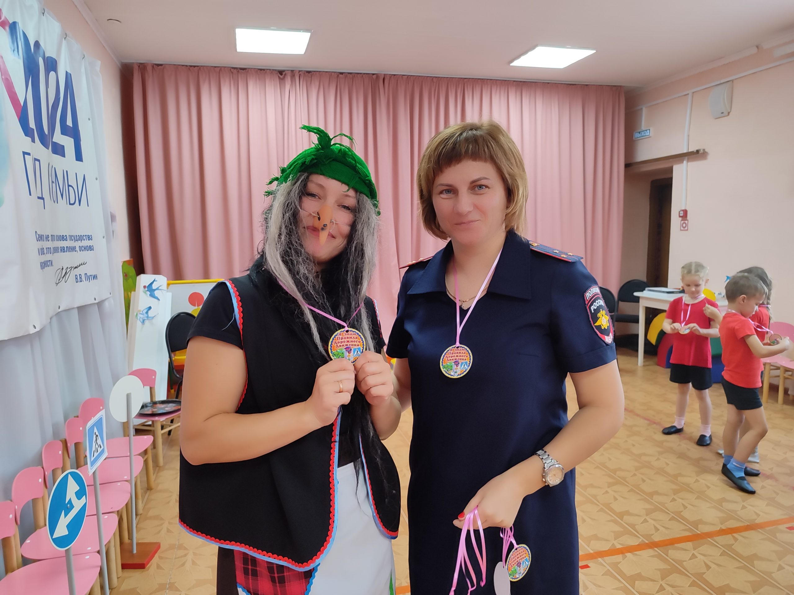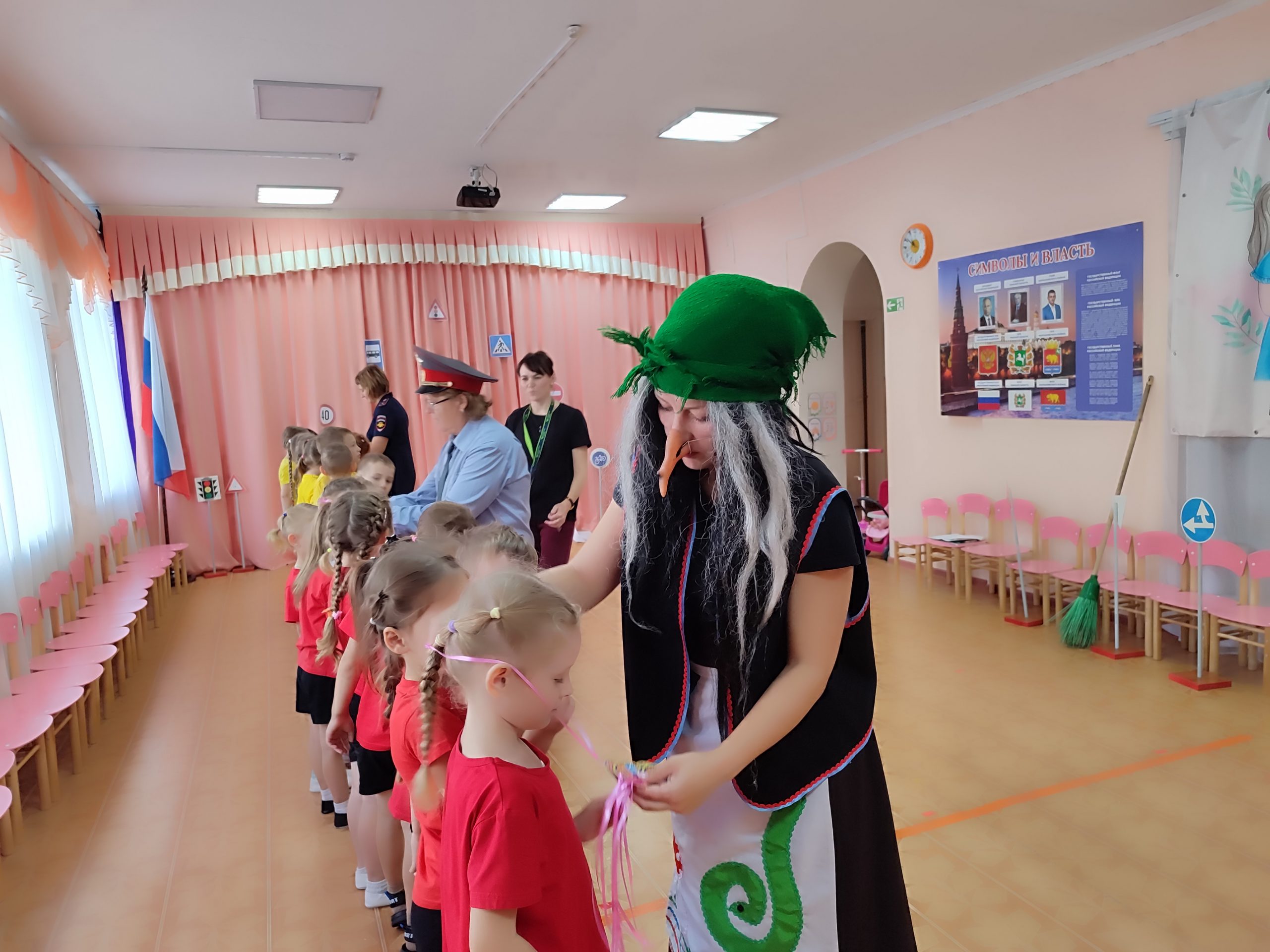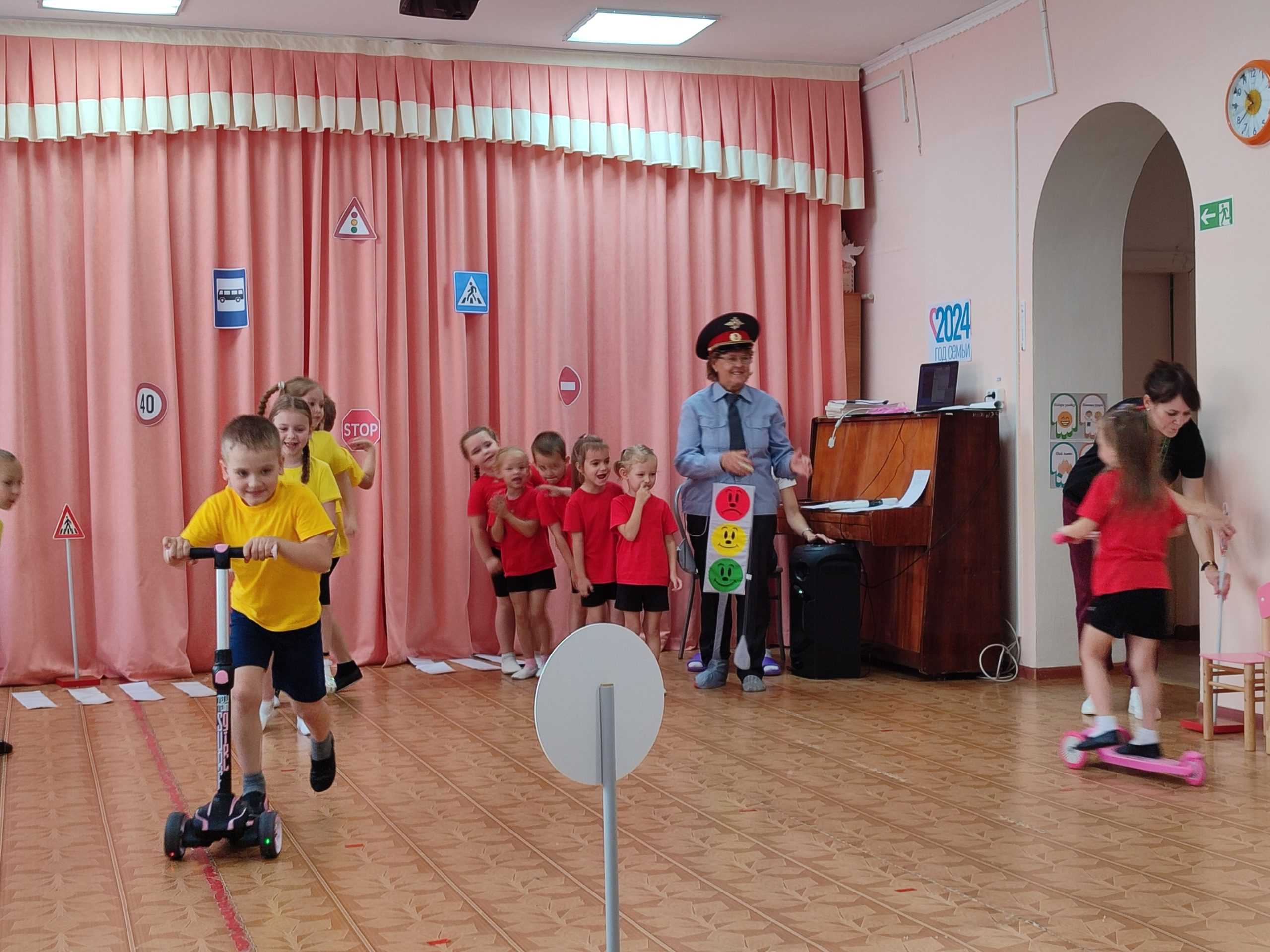 На протяжении всего мероприятия ребята вместе со Светофором учили её правилам. С большим удовольствием дети продемонстрировали свои знания в спортивных эстафетах и игровых упражнениях, таких как «Почини светофор» и «Внимательный водитель». Первоначально Баба-Яга испытывала трудности, вызывая смех у детей, но вскоре, благодаря их помощи, начала быстро осваивать новое. В конце мероприятия инспектор наградила медалями ребят и Бабу-Ягу.