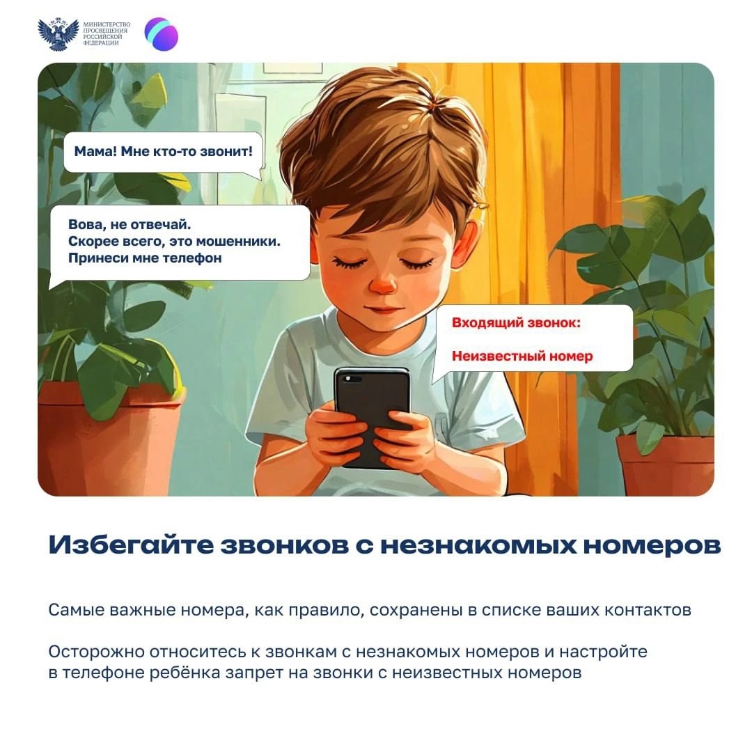 **Обучение основам**: Объясните детям, что не следует делиться личной информацией (номер телефона, адрес, фото) с незнакомыми людьми в Интернете.