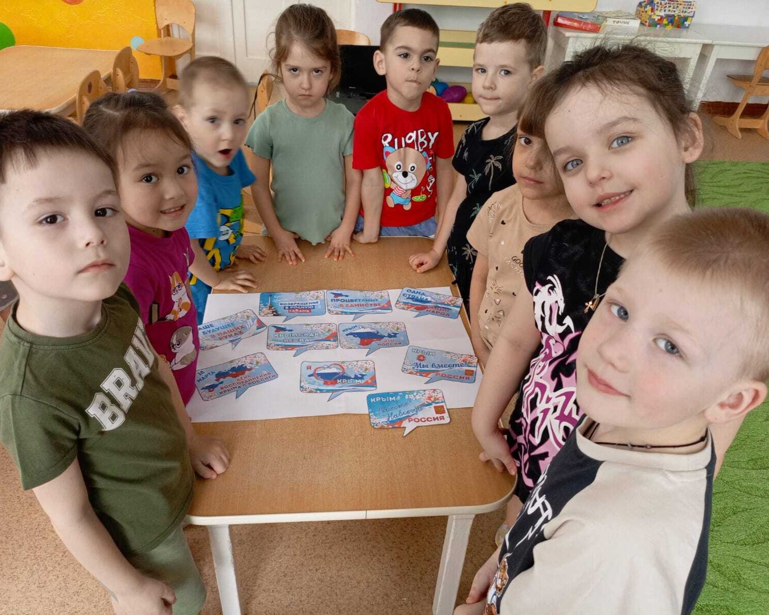 В средней группе царила атмосфера коллективного творчества. Здесь дети создавали плакат под названием «Крым – это Россия!». Работа над плакатом превратилась в увлекательный процесс, где каждый ребенок чувствовал свою причастность к общему делу.