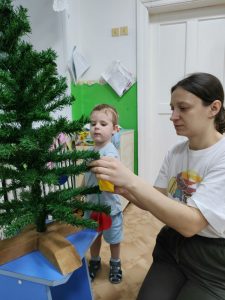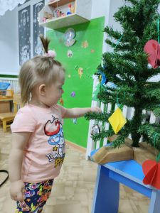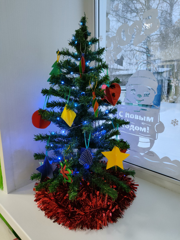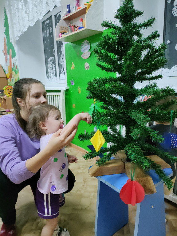 В преддверии Нового года мы все украшаем свои дома различными атрибутами замечательного семейного праздника, наряжаем елки, готовим новогодние костюмы. И взрослые и дети ждут волшебства и подарков, Деда Мороза и Снегурочку, хотят, чтобы Новый наступающий год был лучше и радостнее. Свою группу в детском саду мы с родителями и детками тоже украсили, вырезали украшения на окна, изготовили новогодние поделки. В нашей группе мы поставили елочку и захотели украсить ее игрушками, изготовленными своими руками. Мамочки вместе с детками вырезали, клеили, мастерили красивые, объемные игрушки из различной бумаги, а затем украшали елку. В дружной, шумной, активной обстановке мы украсили елочку и все вместе водили хоровод вокруг лесной красавицы. Очень мило смотрится наша елочка, украшенная игрушками нашего собственного производства!